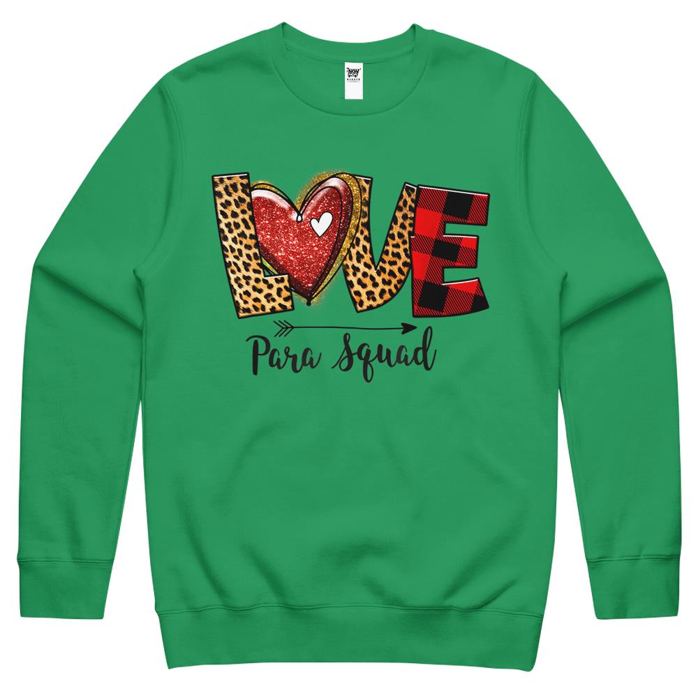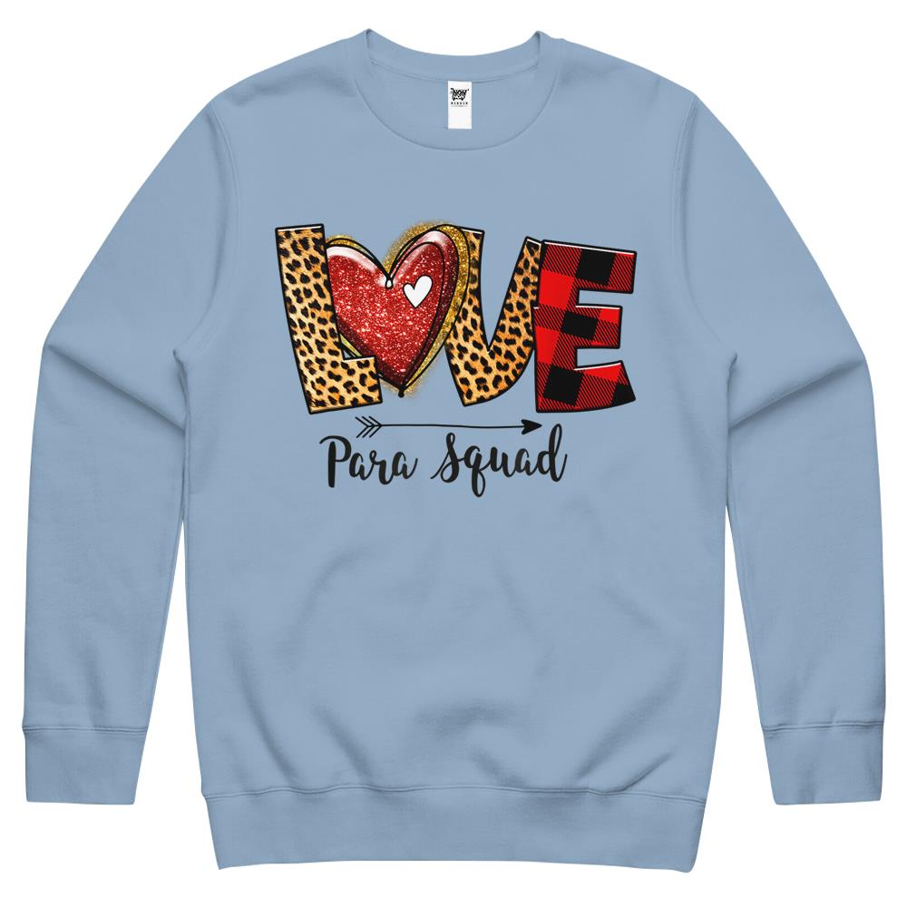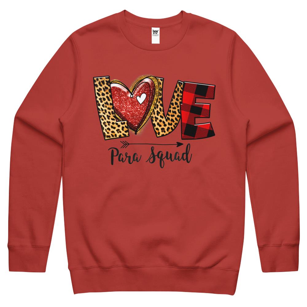 Love Para Squad Valentines Day Paraprofessional Teacher Crewneck Sweatshirt
