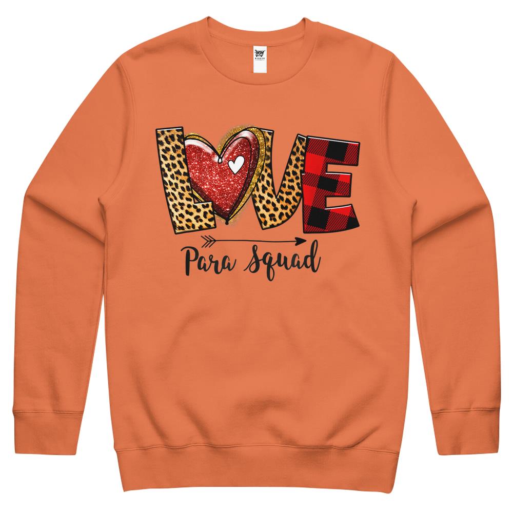 So whether you're looking to show off your own name or create a personalized gift for someone special, LateAndLow Store has got you covered. Start designing your own custom Love Para Squad Valentines Day Paraprofessional Teacher Crewneck Sweatshirt print-on-demand product today, and let us bring your vision to life!