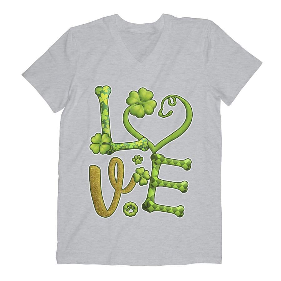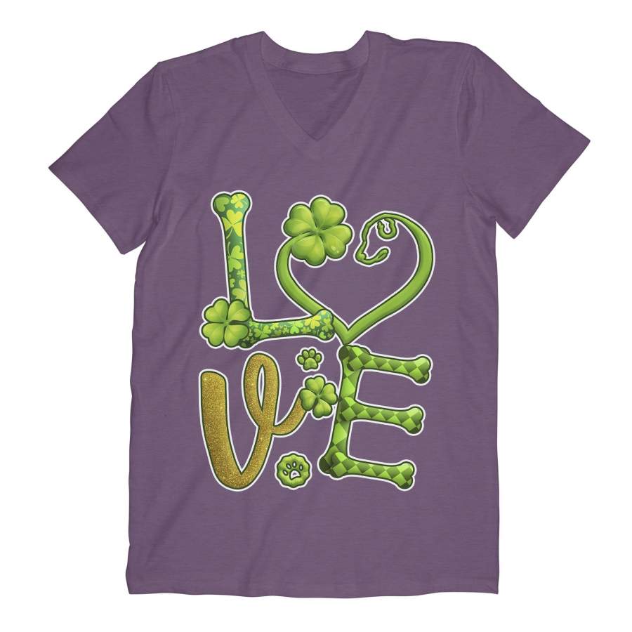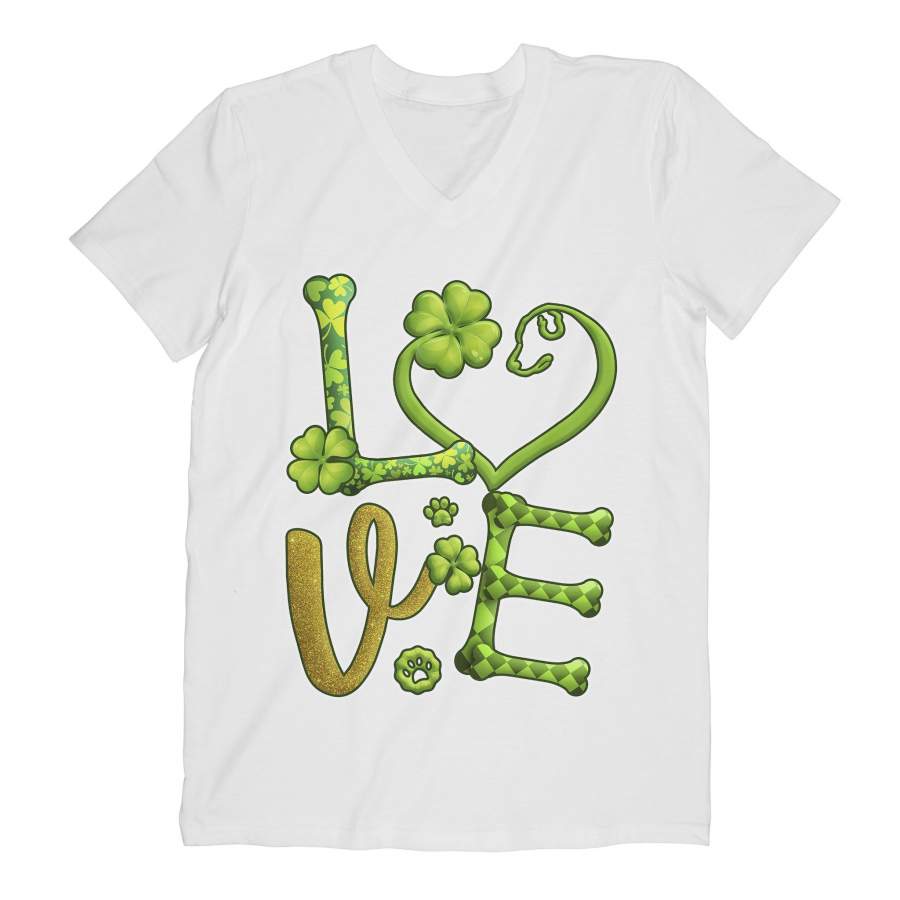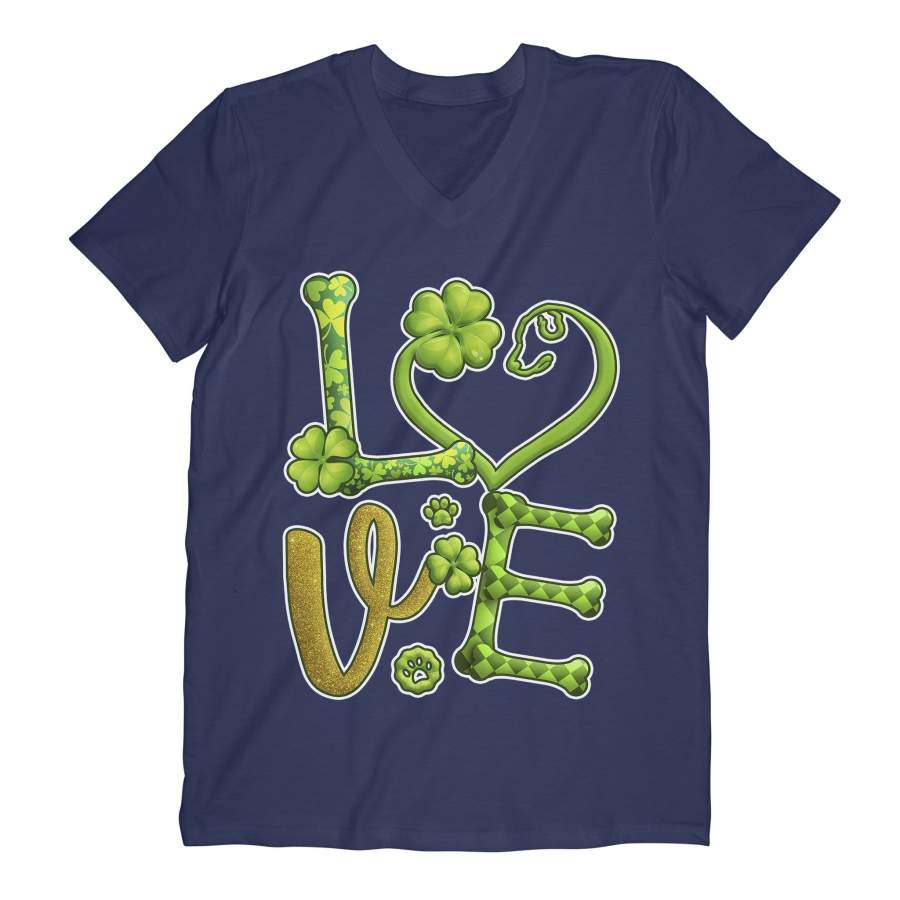 Love Shamrock Dog Paw Saint Patrick’s Day Green Clover Irish V-neck