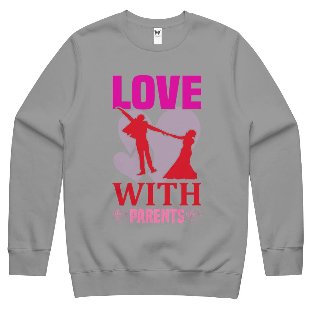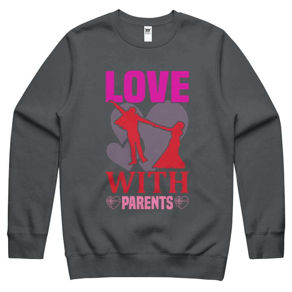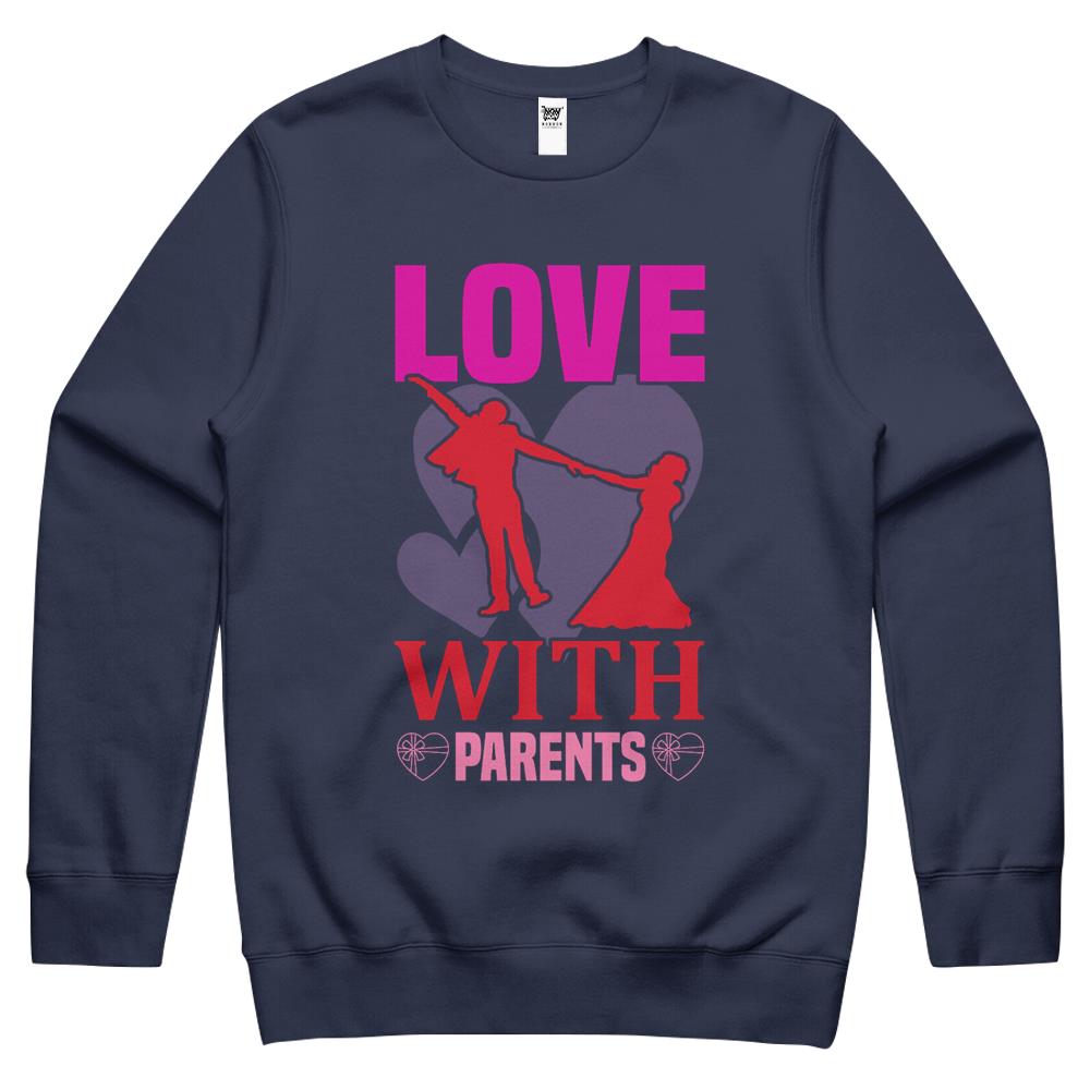 So whether you're looking to show off your own name or create a personalized gift for someone special, LateAndLow Store has got you covered. Start designing your own custom Love With Parents Crewneck Sweatshirt print-on-demand product today, and let us bring your vision to life!