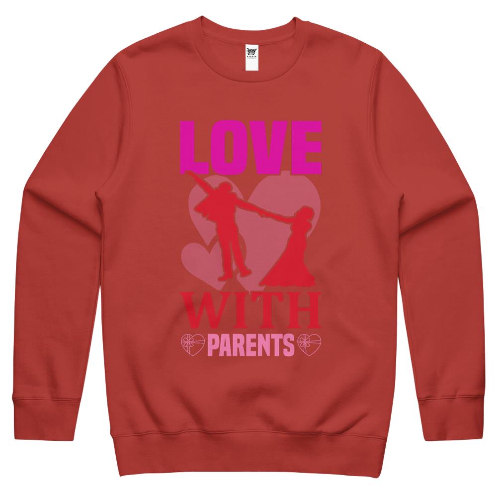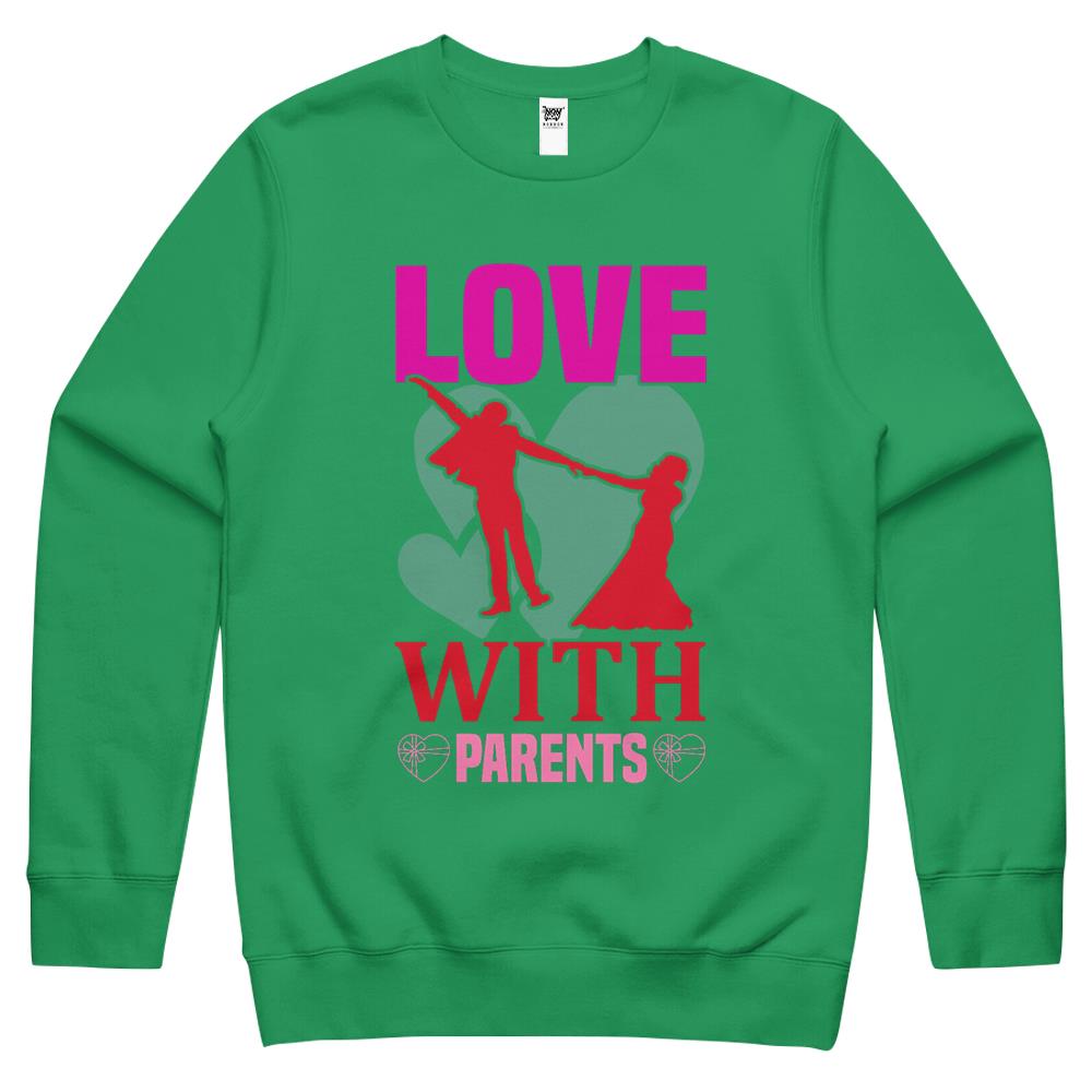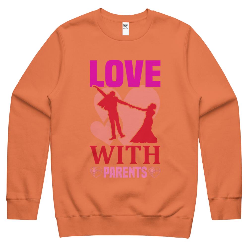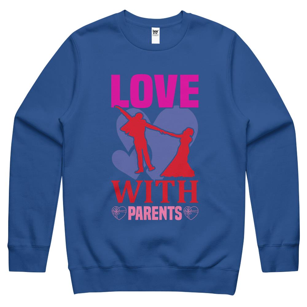 So whether you're looking to show off your own name or create a personalized gift for someone special, LateAndLow Store has got you covered. Start designing your own custom Love With Parents Crewneck Sweatshirt print-on-demand product today, and let us bring your vision to life!