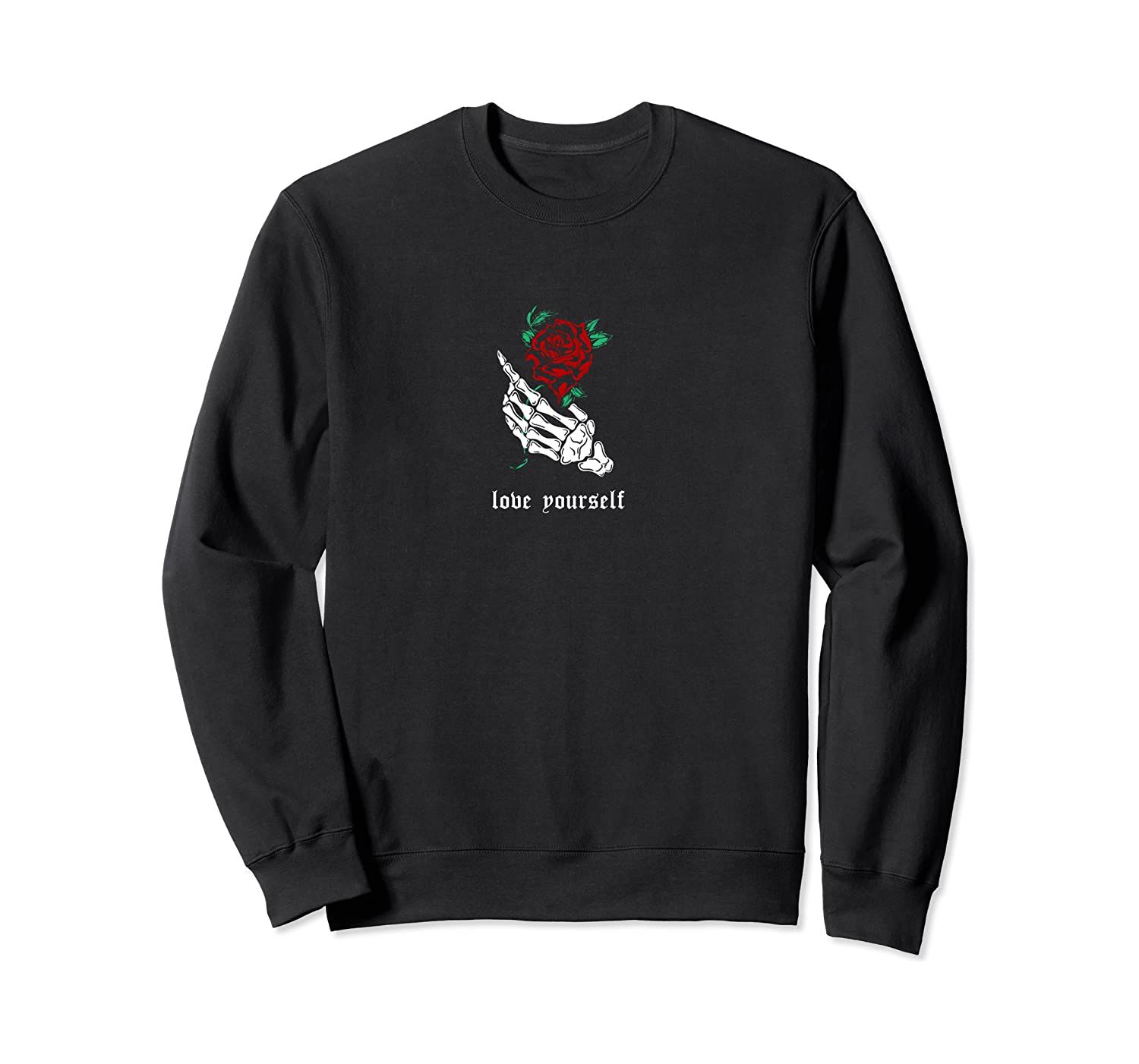 Love Yourself Skeleton Hand Red Rose Aesthetic Goth Tattoo Pullover Hoodie, T-Shirt, Sweatshirt