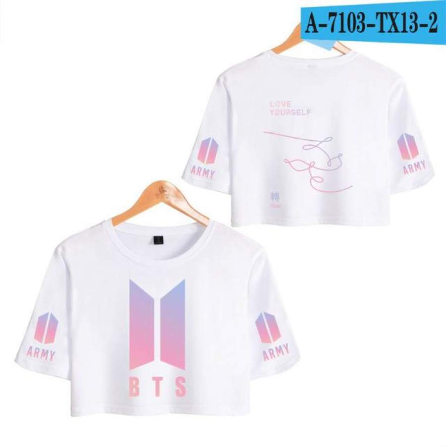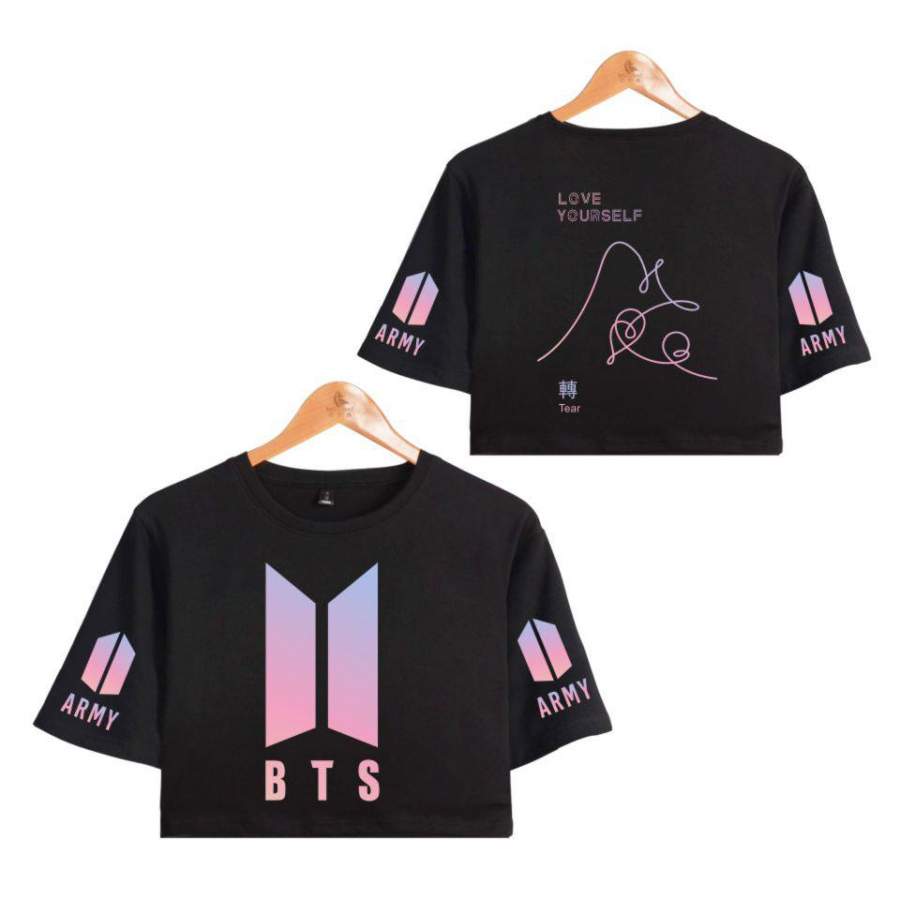 So whether you're looking to show off your own name or create a personalized gift for someone special, LateAndLow Store has got you covered. Start designing your own custom LOVE YOURSELF Tear K pop Midriff Tops Short Sleeve T-shirt Women Summer Female Crop Top Hip Hop Clothes print-on-demand product today, and let us bring your vision to life!