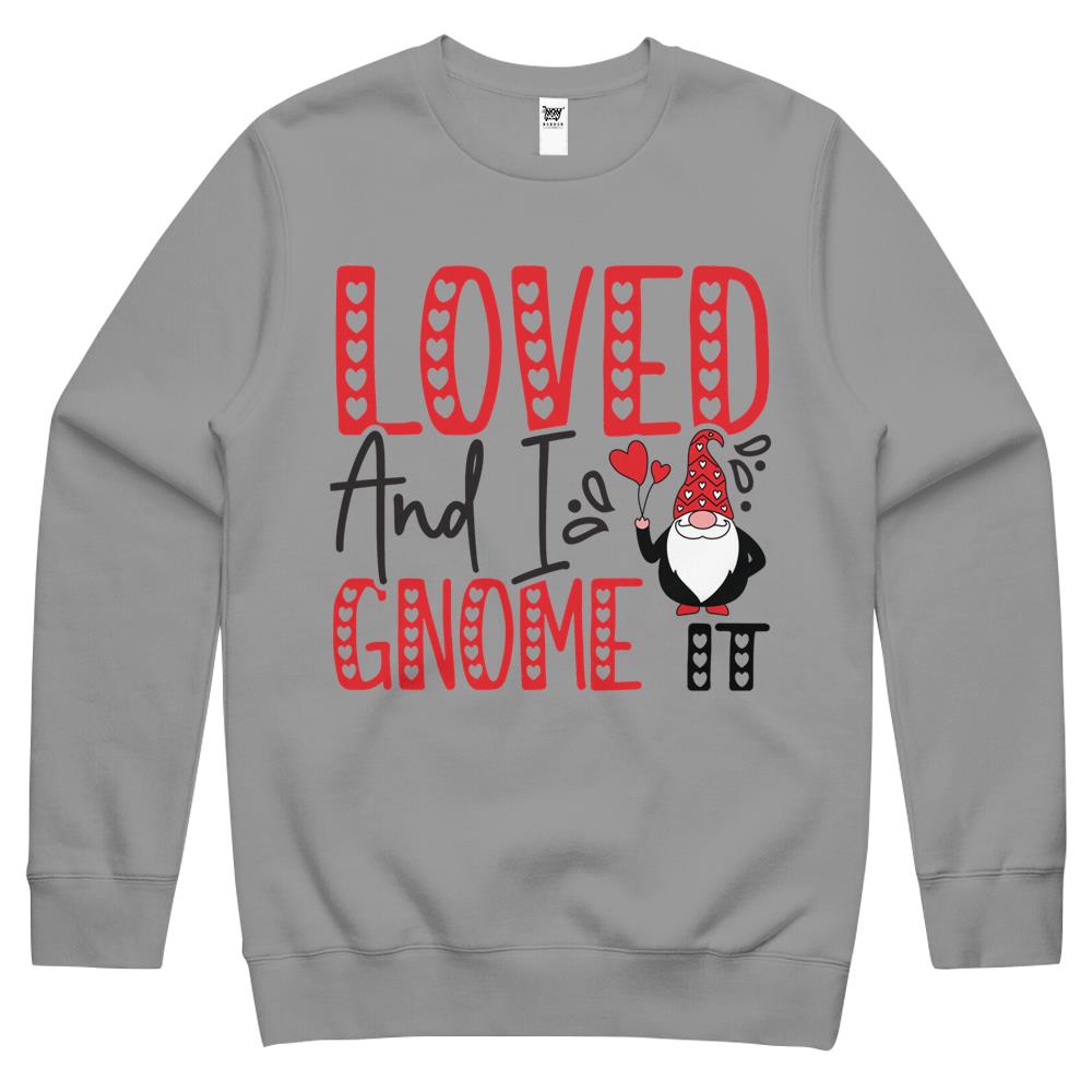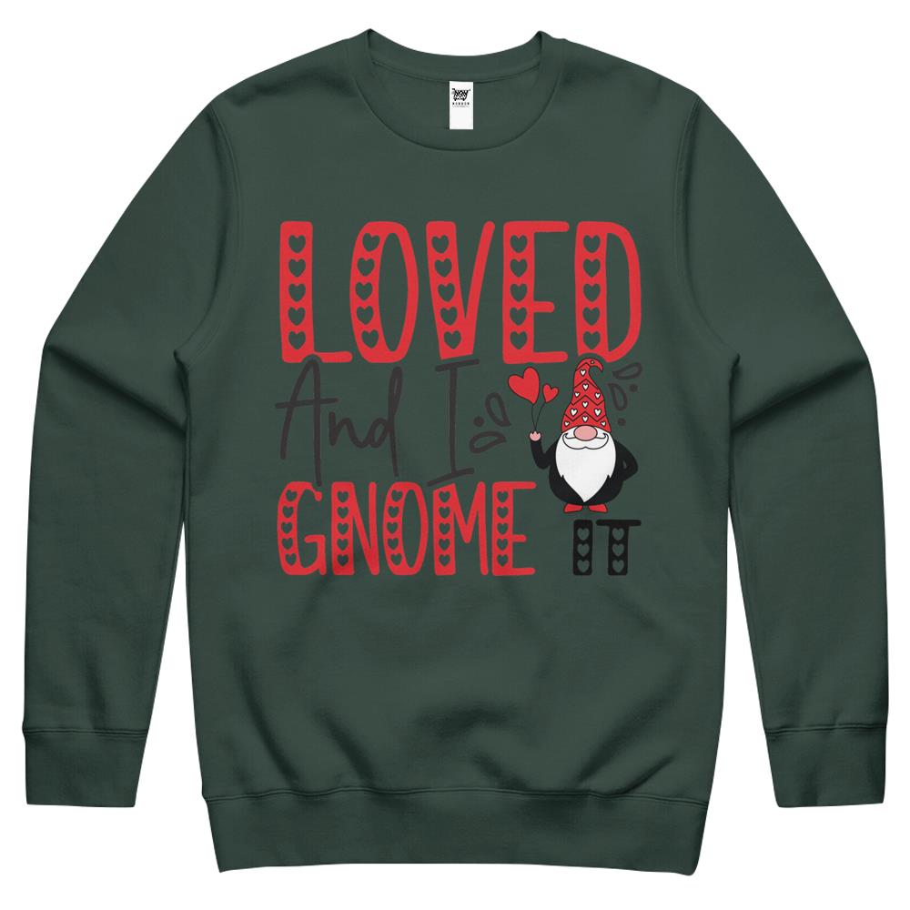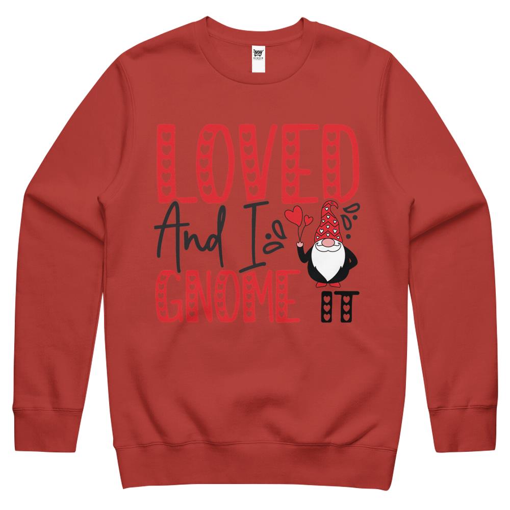 Loved And I Gnome It, Gnome Valentine’S Day, Crewneck Sweatshirt