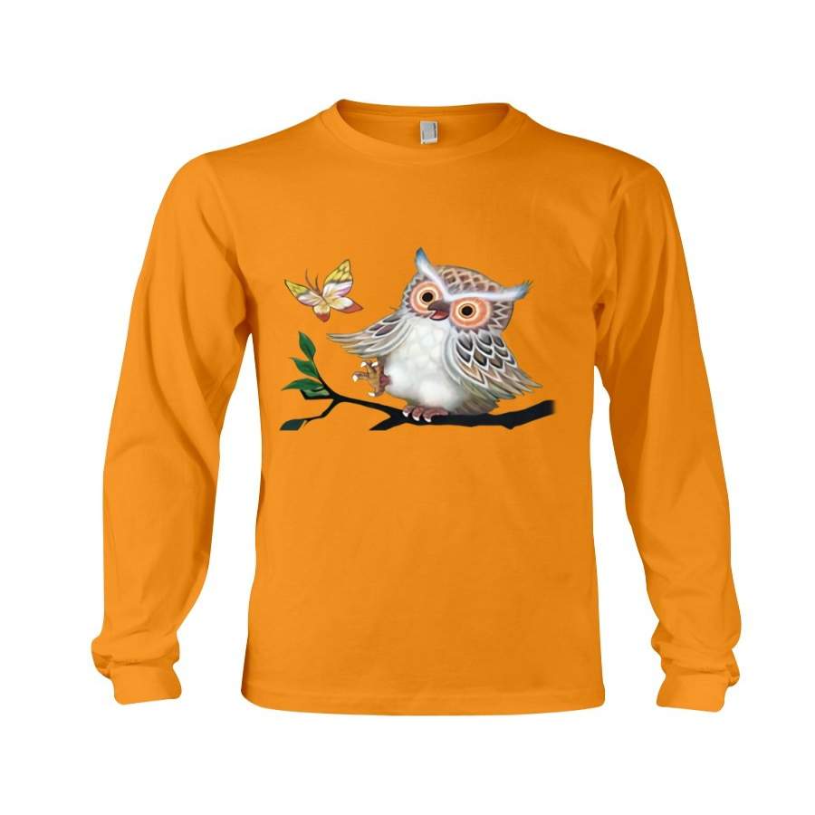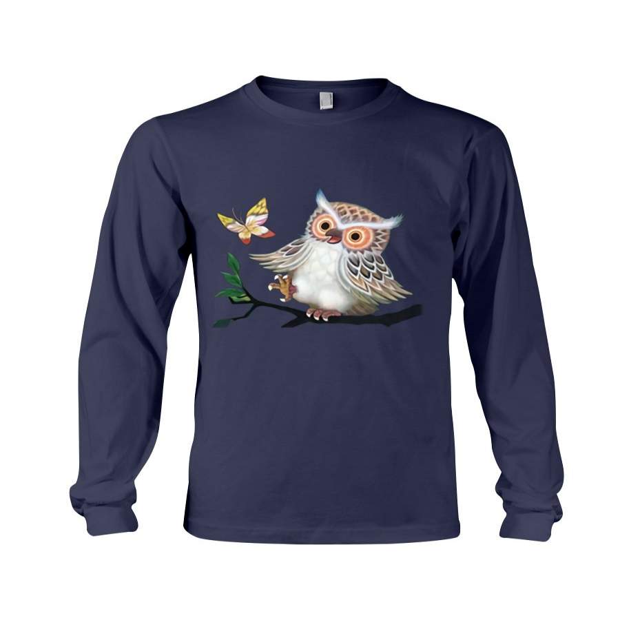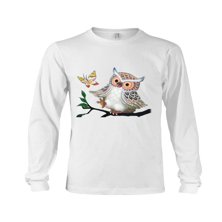 Lovely Tote Bags Owl Looking Butterfly Gift For Owl Lovers Unisex Long Sleeve
