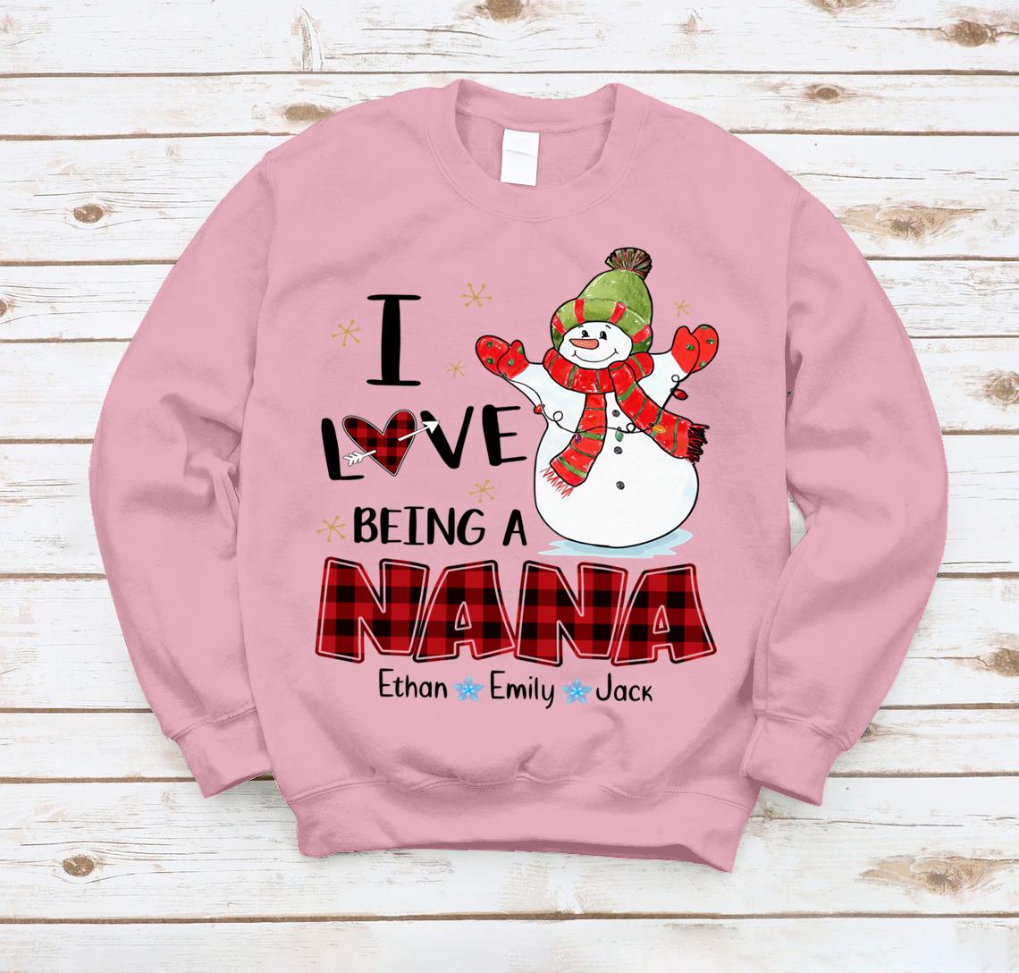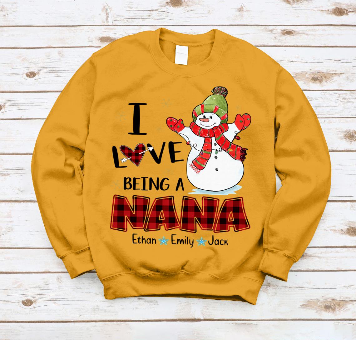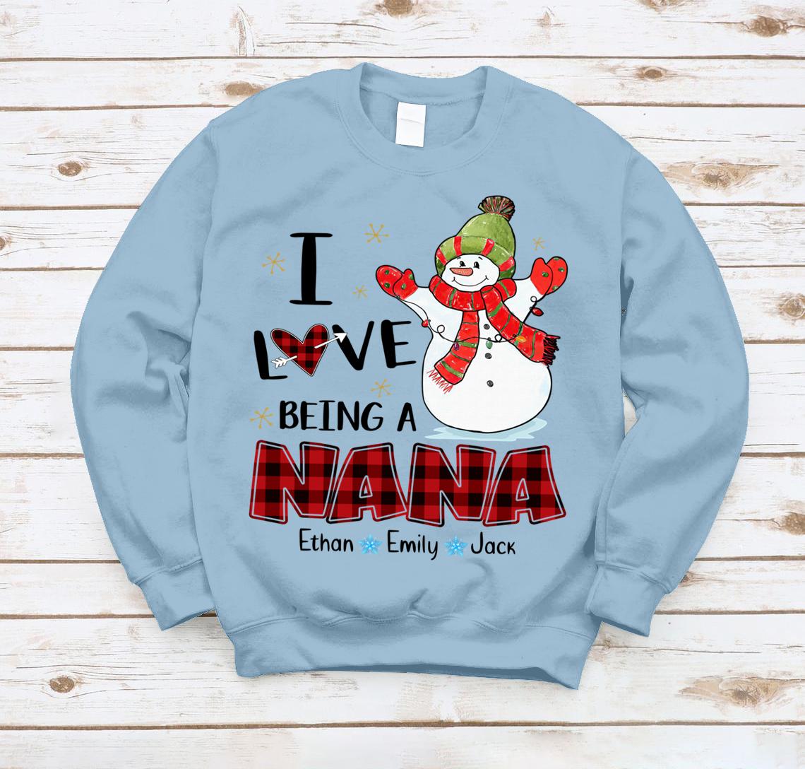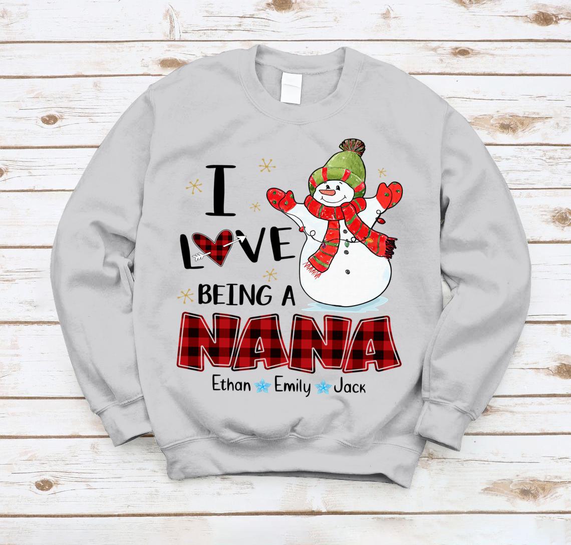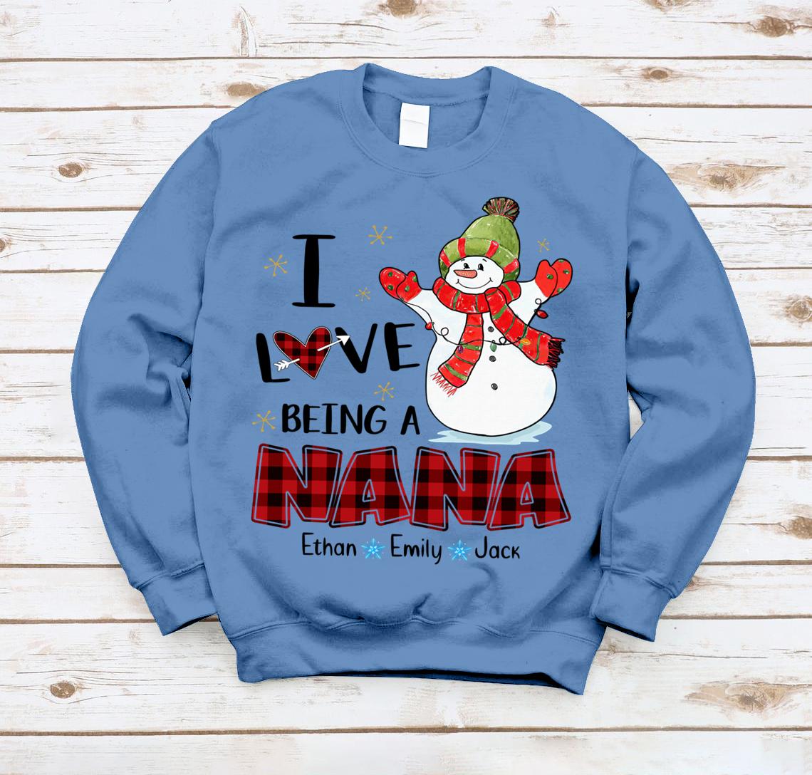 Lovelypod – Sweatshirt Shirt, I Love Being A Nana Snowman Shirt, Happy Christmas Gift Nana Custom Name Shirt