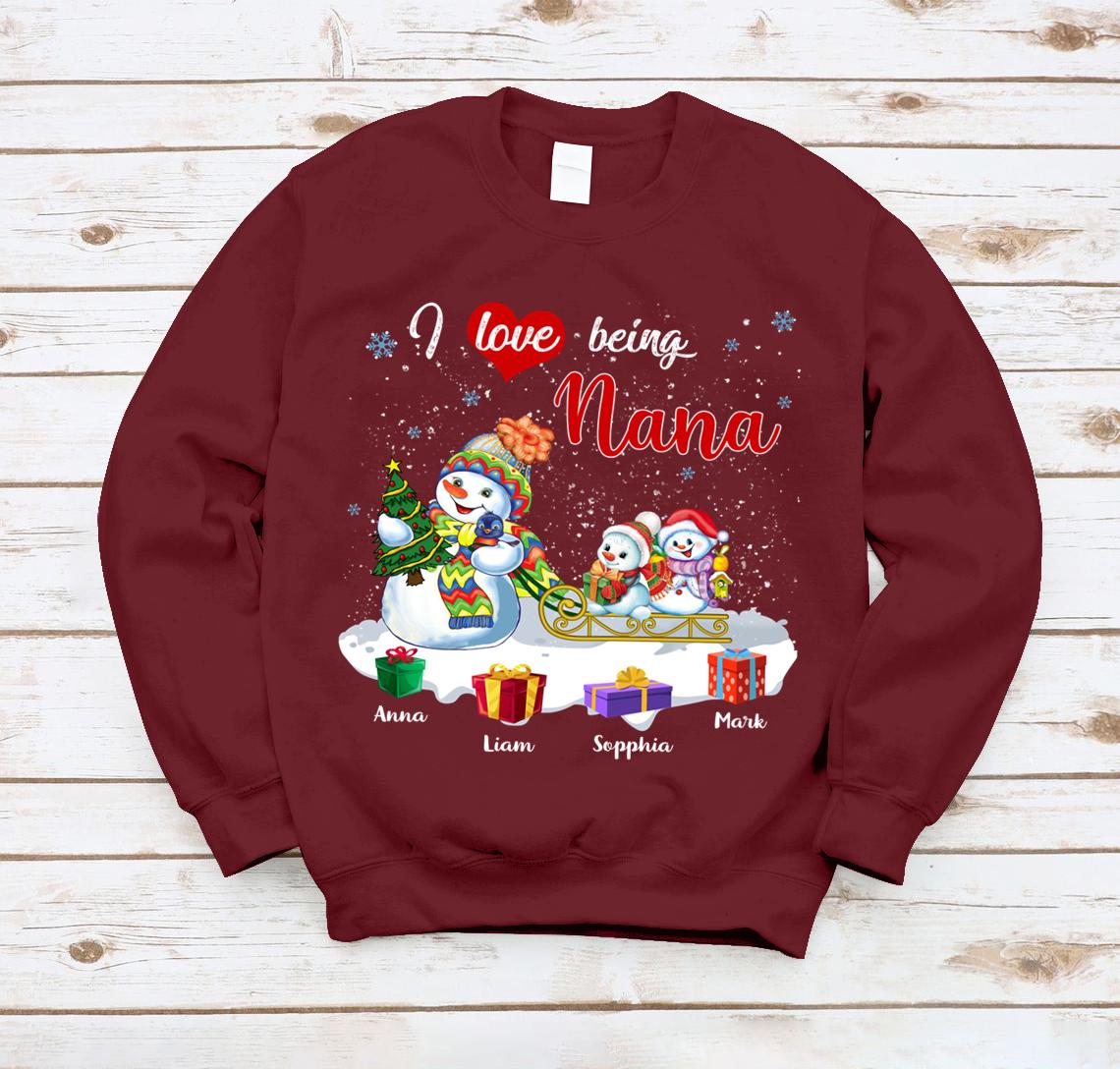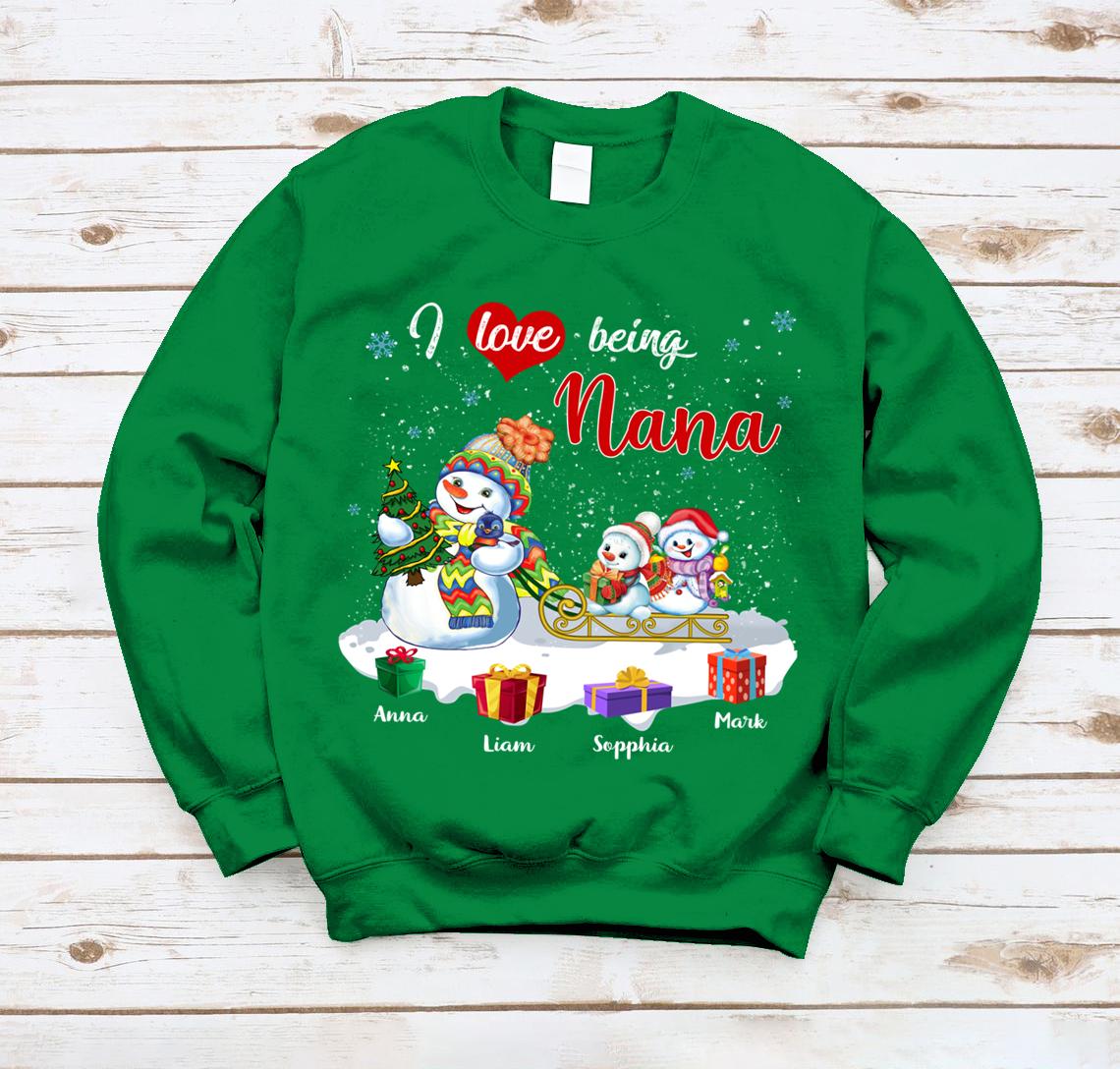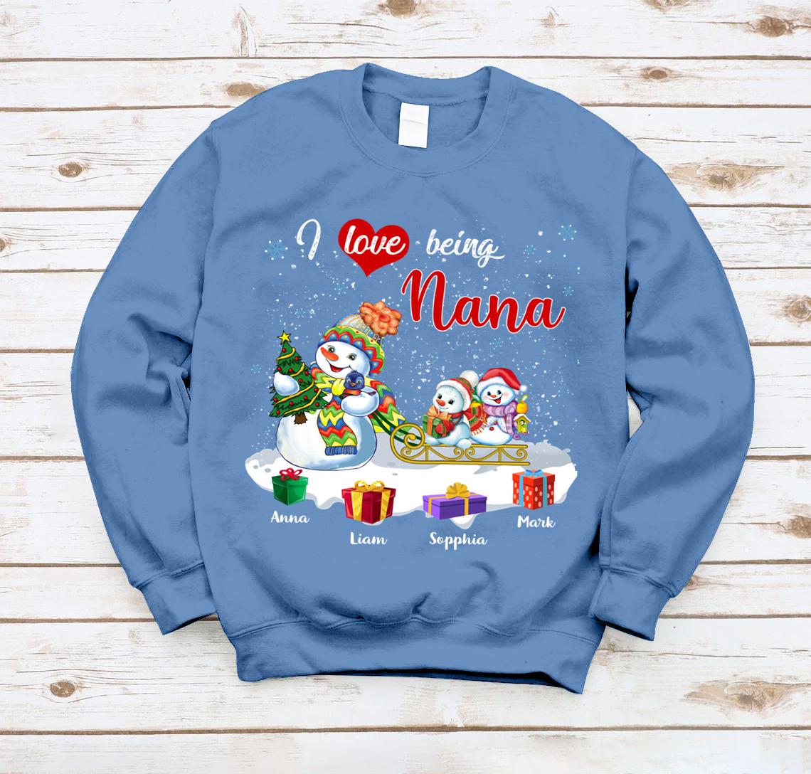 Lovelypod – Sweatshirt Shirt, I Love Being Nana Shirt, Snowmies Christmas Custom Names Gift Shirt