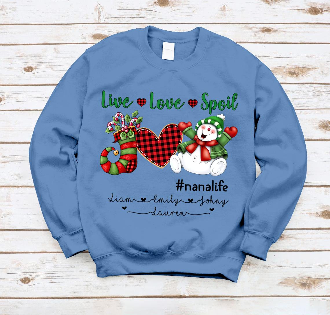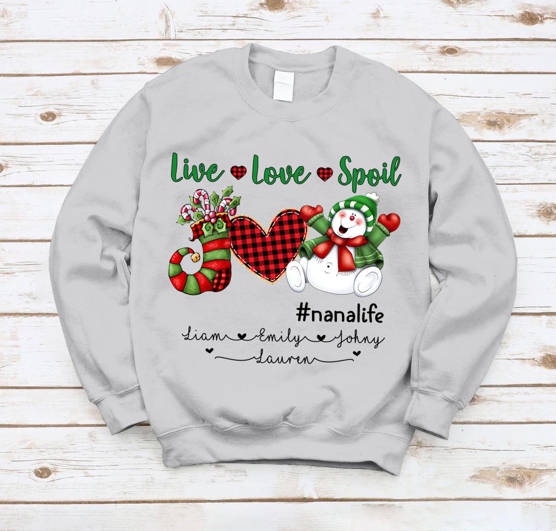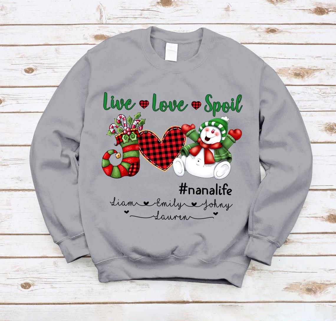 Lovelypod – Sweatshirt Shirt, Live Love Spoil Grandma Custom Christmas Gift Shirt, Nana Grandkids Names Shirt