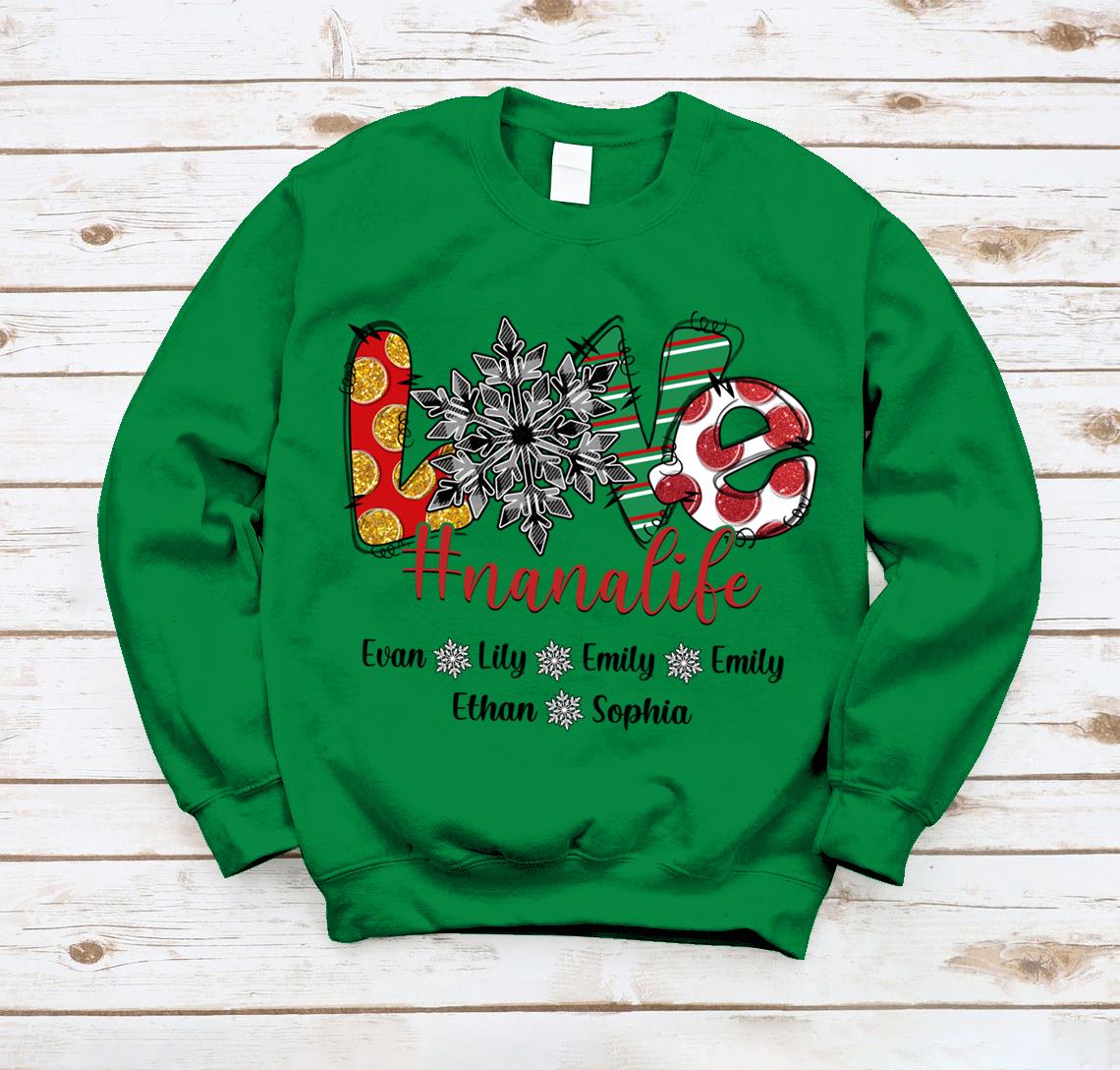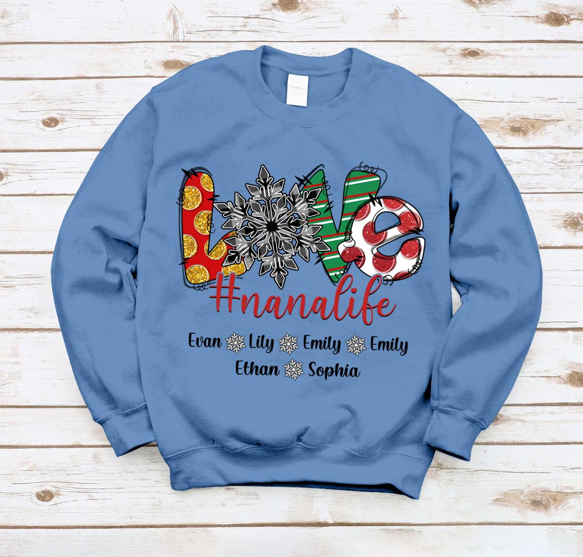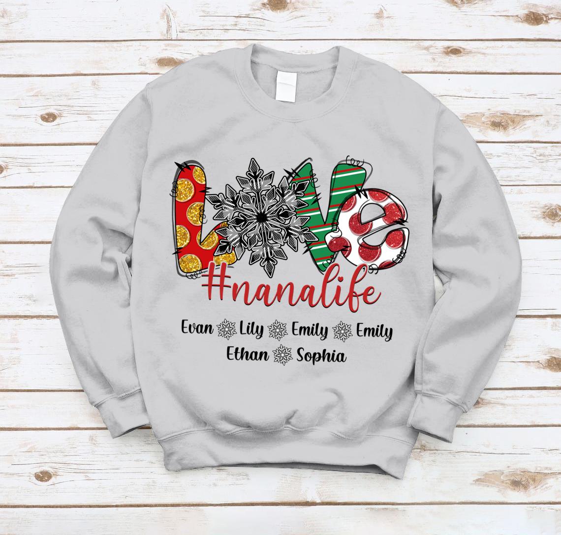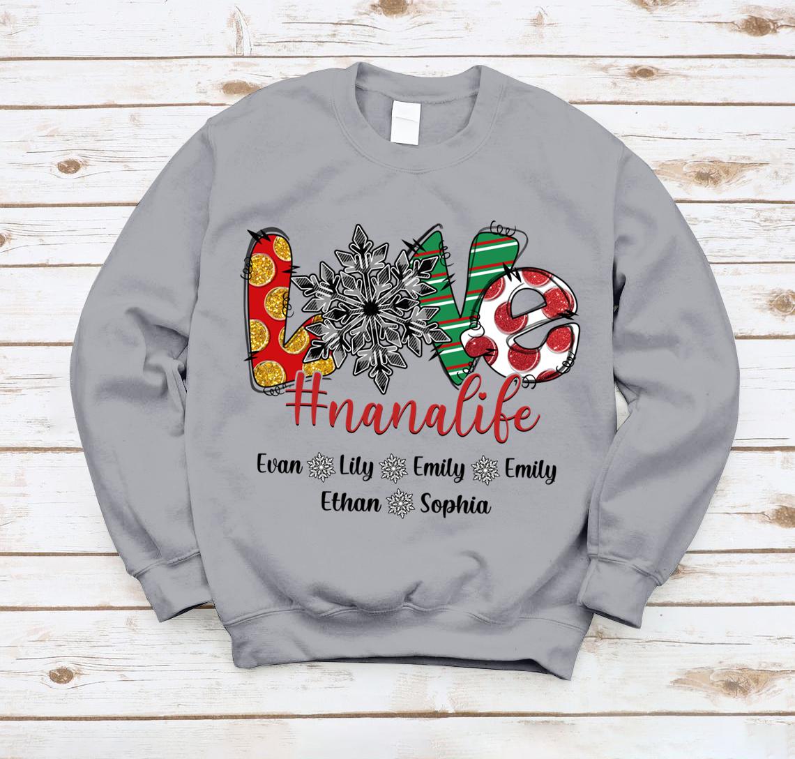 Lovelypod – Sweatshirt Shirt, Love Nana Life Christmas Shirt, Santa Snowflake Christmas Shirt
