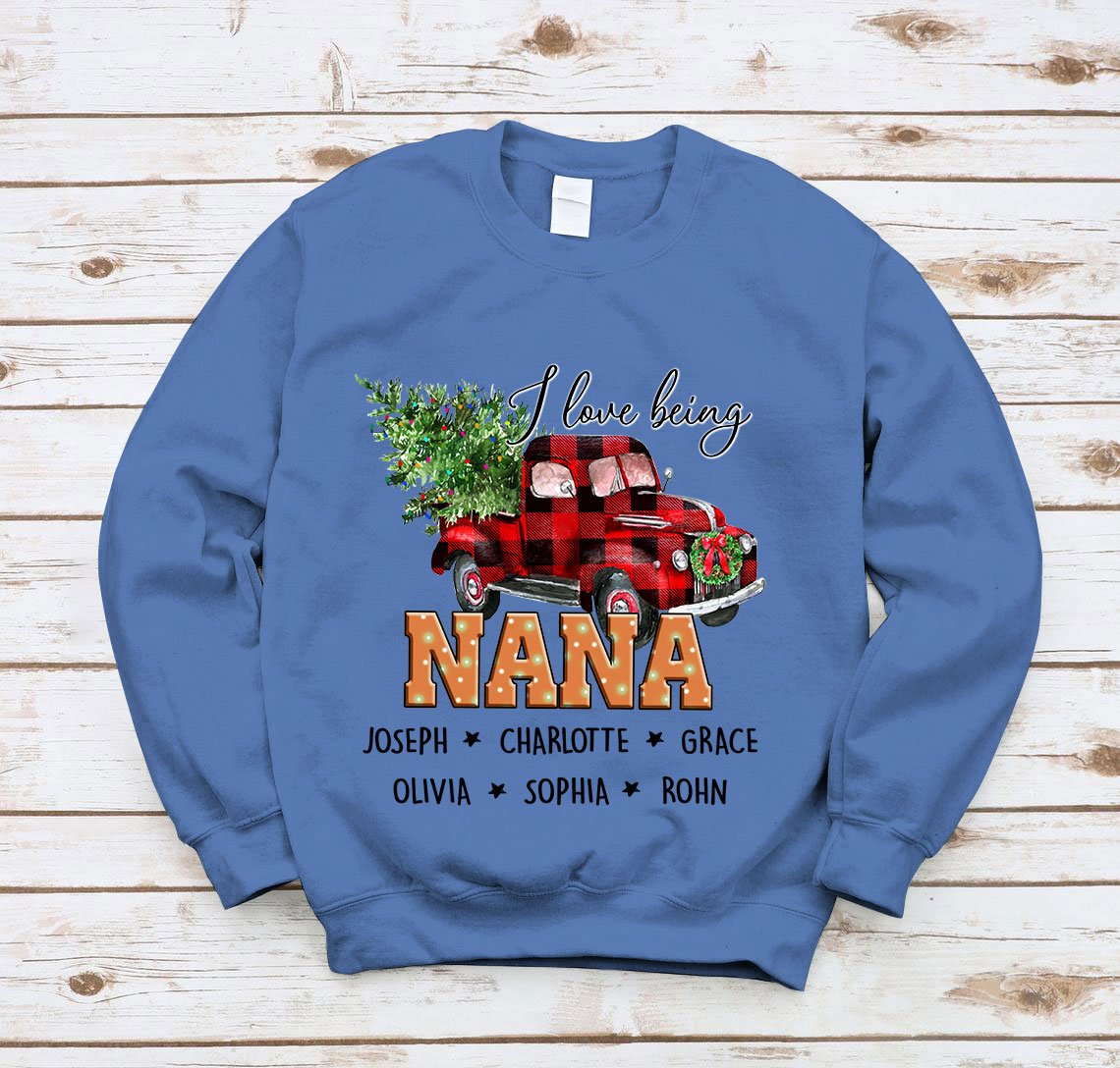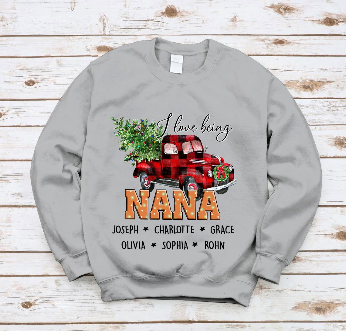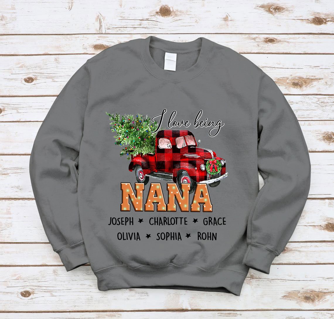 So whether you're looking to show off your own name or create a personalized gift for someone special, LateAndLow Store has got you covered. Start designing your own custom Lovelypod,I Love Being Nana Christmas Truck ,Sweatshirt print-on-demand product today, and let us bring your vision to life!