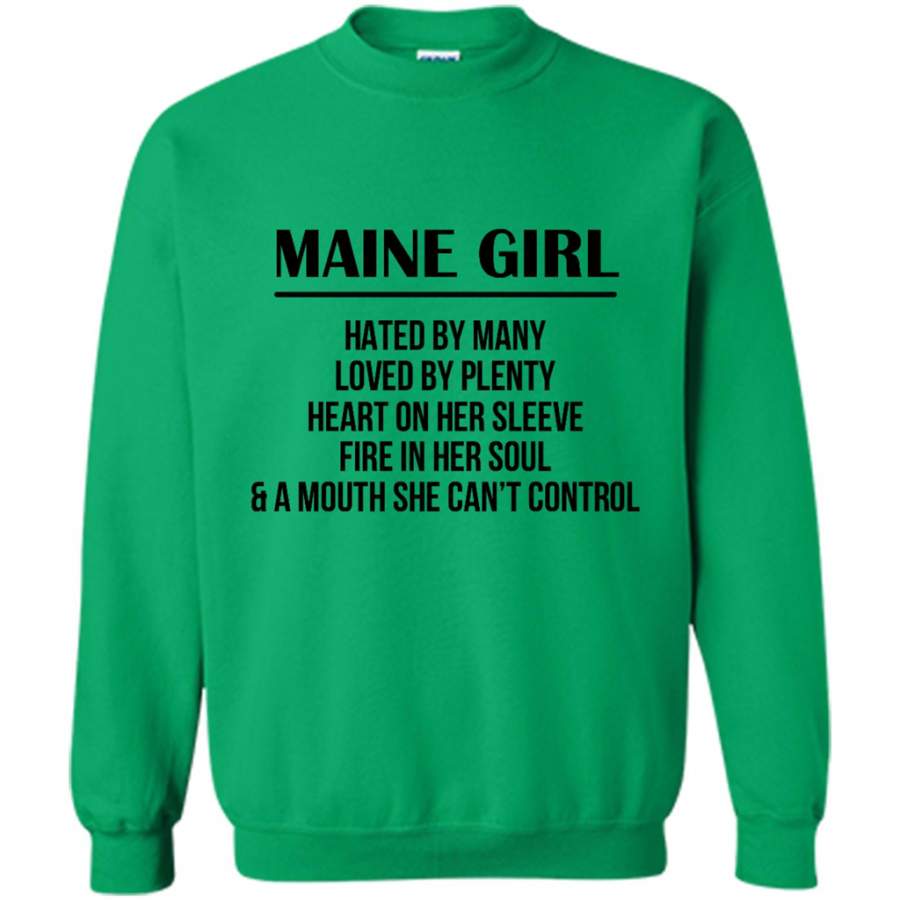 Maine Girl Hated By Many Loved By Plenty Heart On Her Sleeve Fire In Her Soul A Mouth She Can’t Control – Gildan Crewneck Sweatshirt