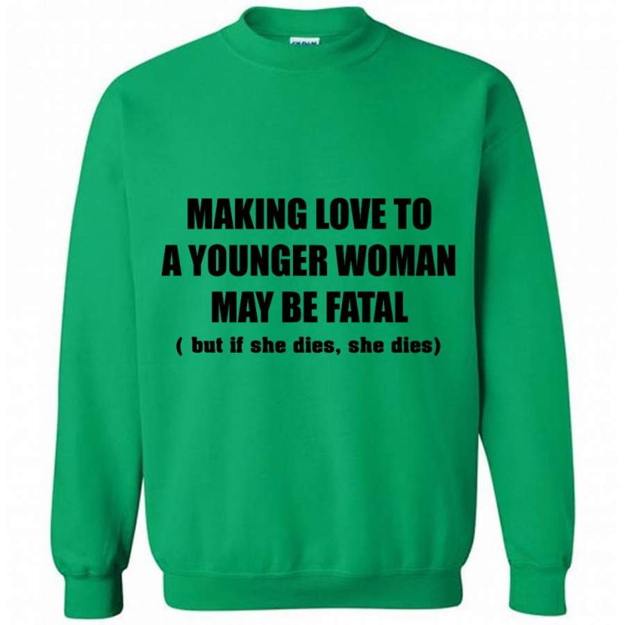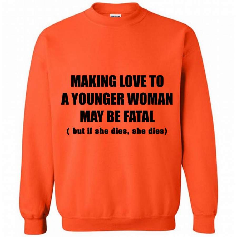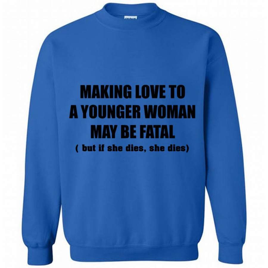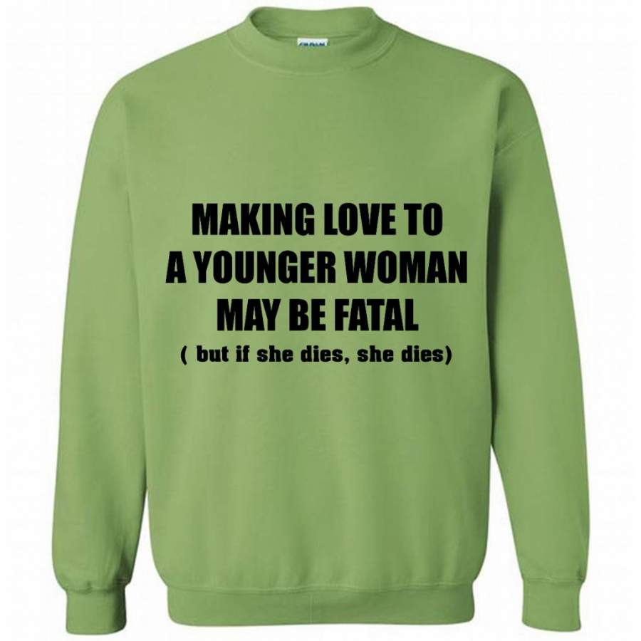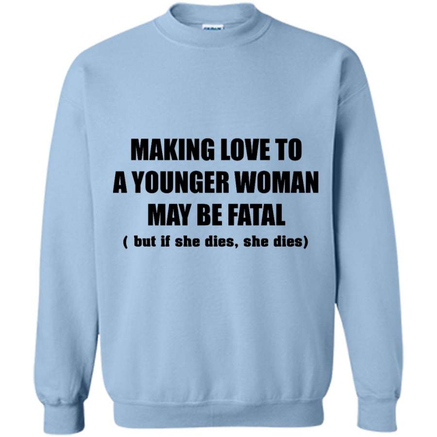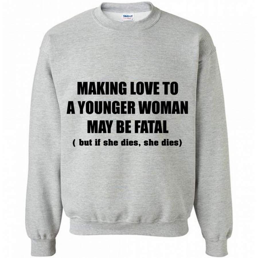 Making Love To A Younger Woman May Be Fatal But If She Dies She Dies (w) – Gildan Crewneck Sweatshirt