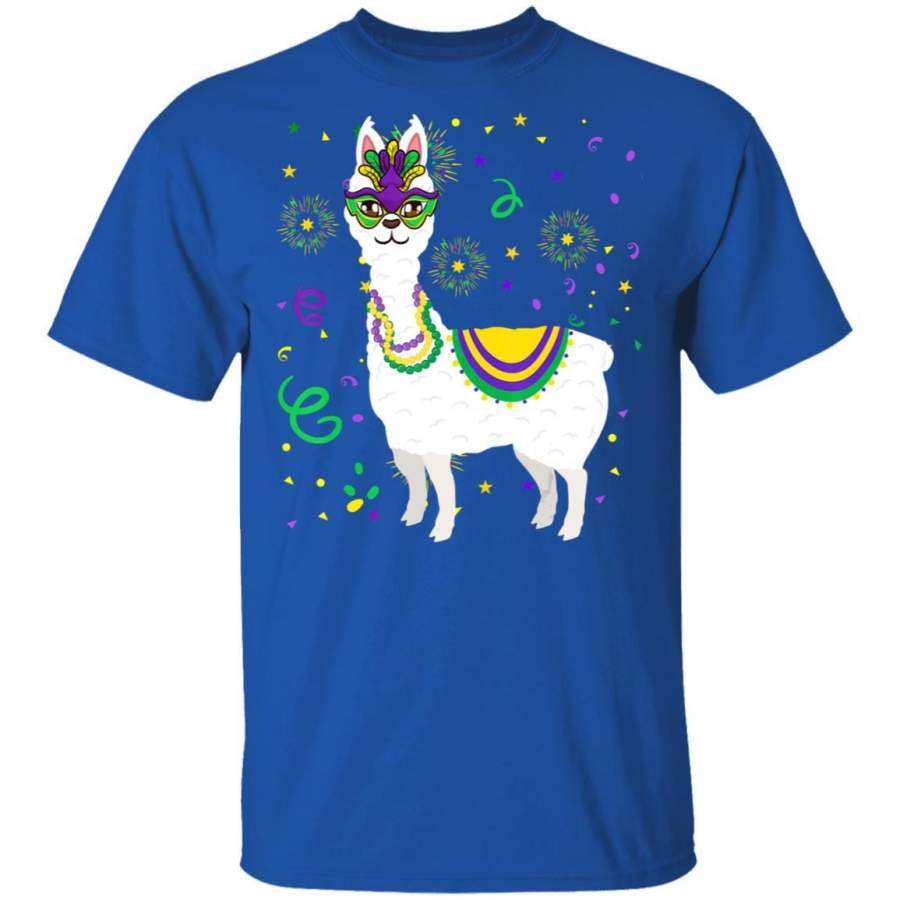 Mardi Gras 2020 Alpaca Llama With Feather Mask Parade Fans T Shirt Costume Mask T-Shirt Fat Tuesday Tshirt Carnival Festival Tee Friends Shirts