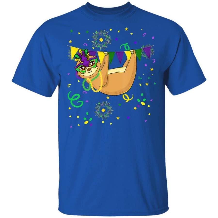 Mardi Gras 2020 Sloth With Feather Mask Parade Fans T Shirt Costume Mask T-Shirt Fat Tuesday Tshirt Carnival Festival Tee Friends Shirts