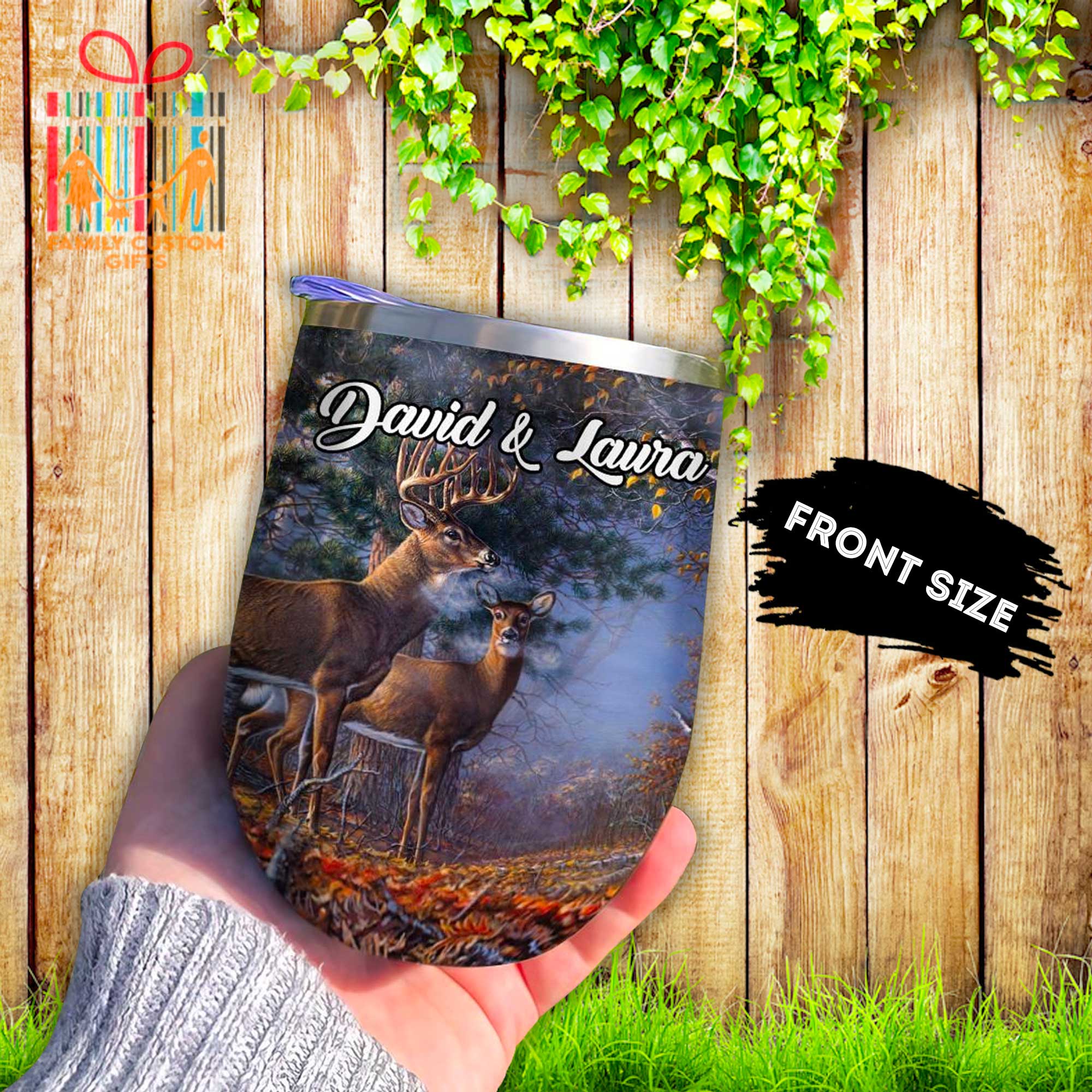 Married Couple Deer Gift Custom Tumbler Cups For Her & Him Personalized Stainless Steel Wine Glasses