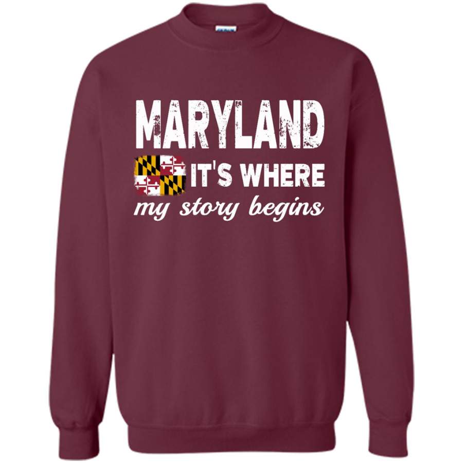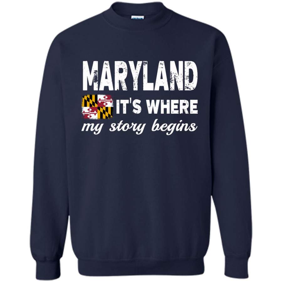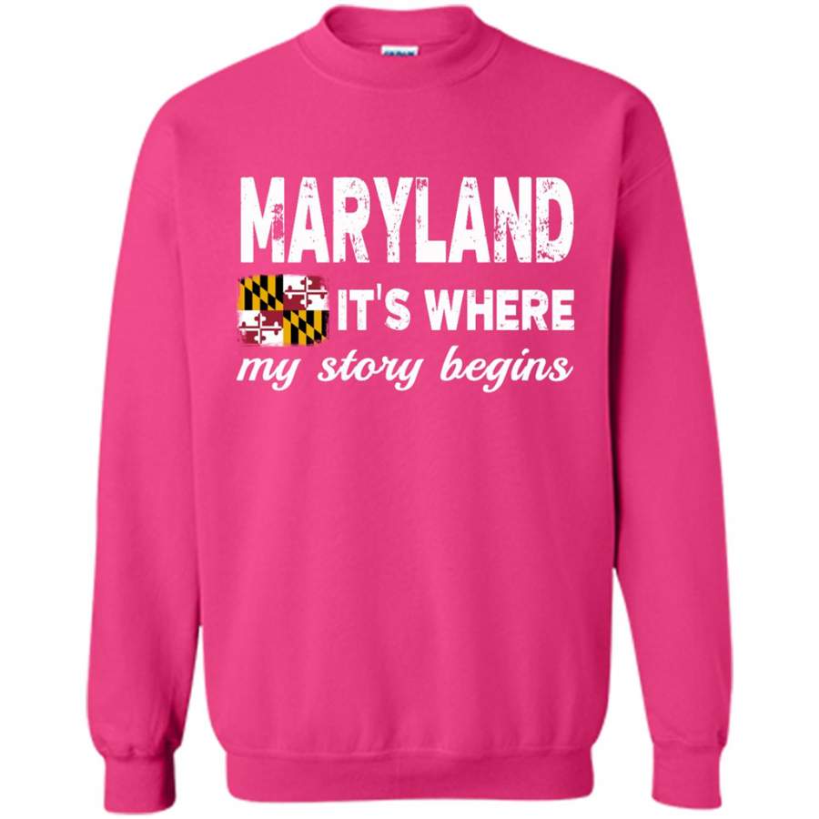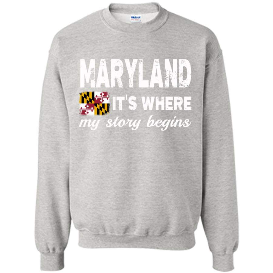 Maryland States – It’s Where My Love Story Begins – Gildan Crewneck Sweatshirt