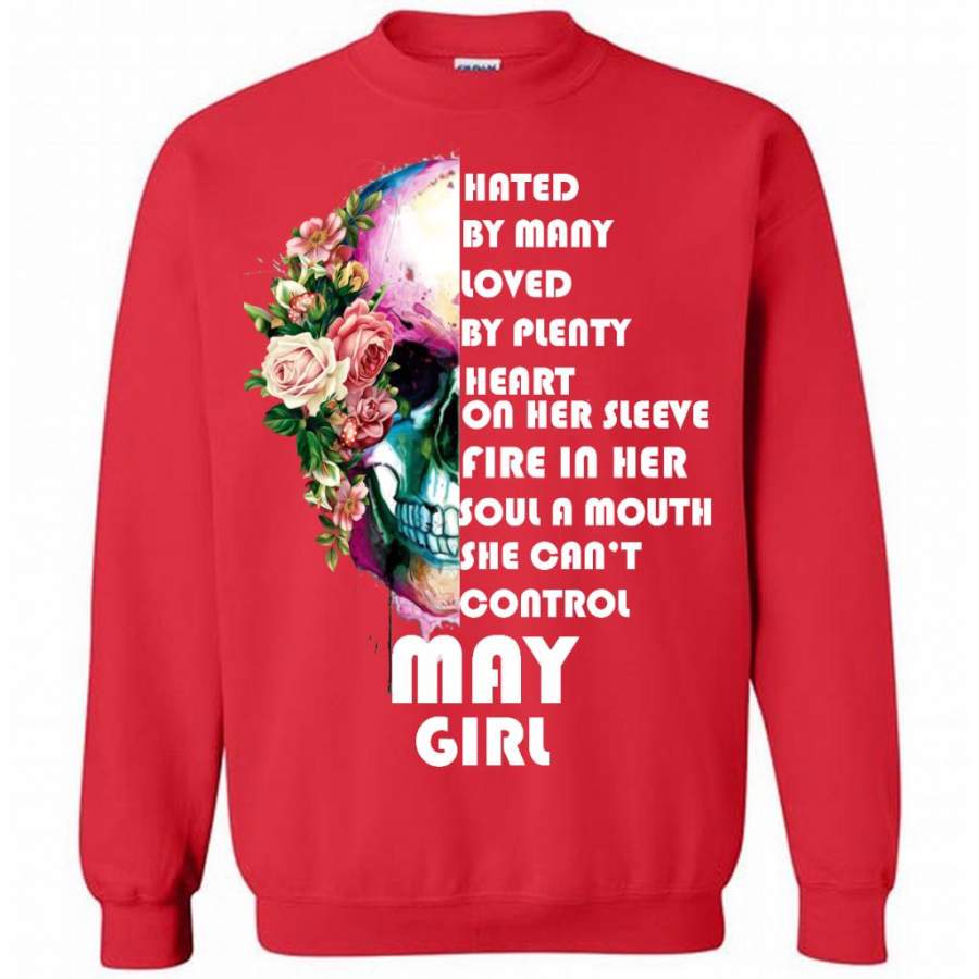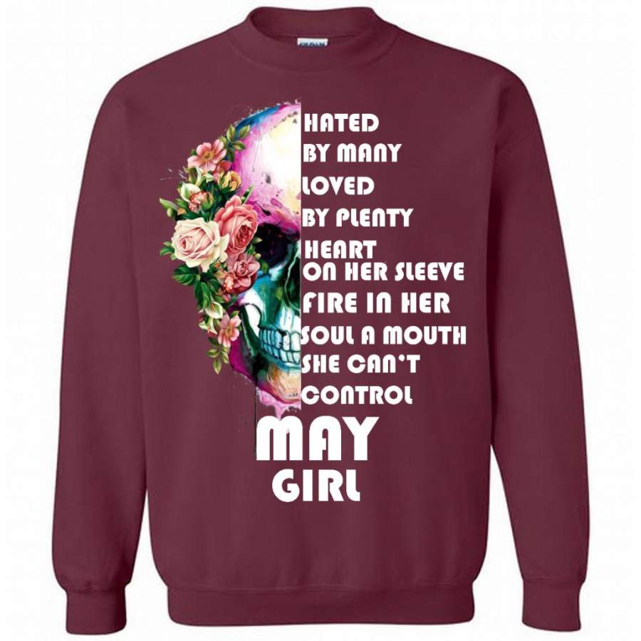 May Girl, Hated By Many Loved By Plenty Heart On Her Sleeve Fire In Her Soul A Mouth She Can’t Control – Gildan Crewneck Sweatshirt