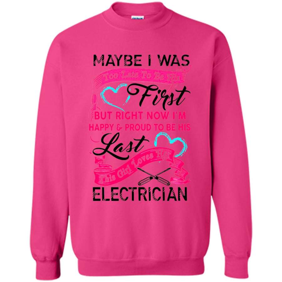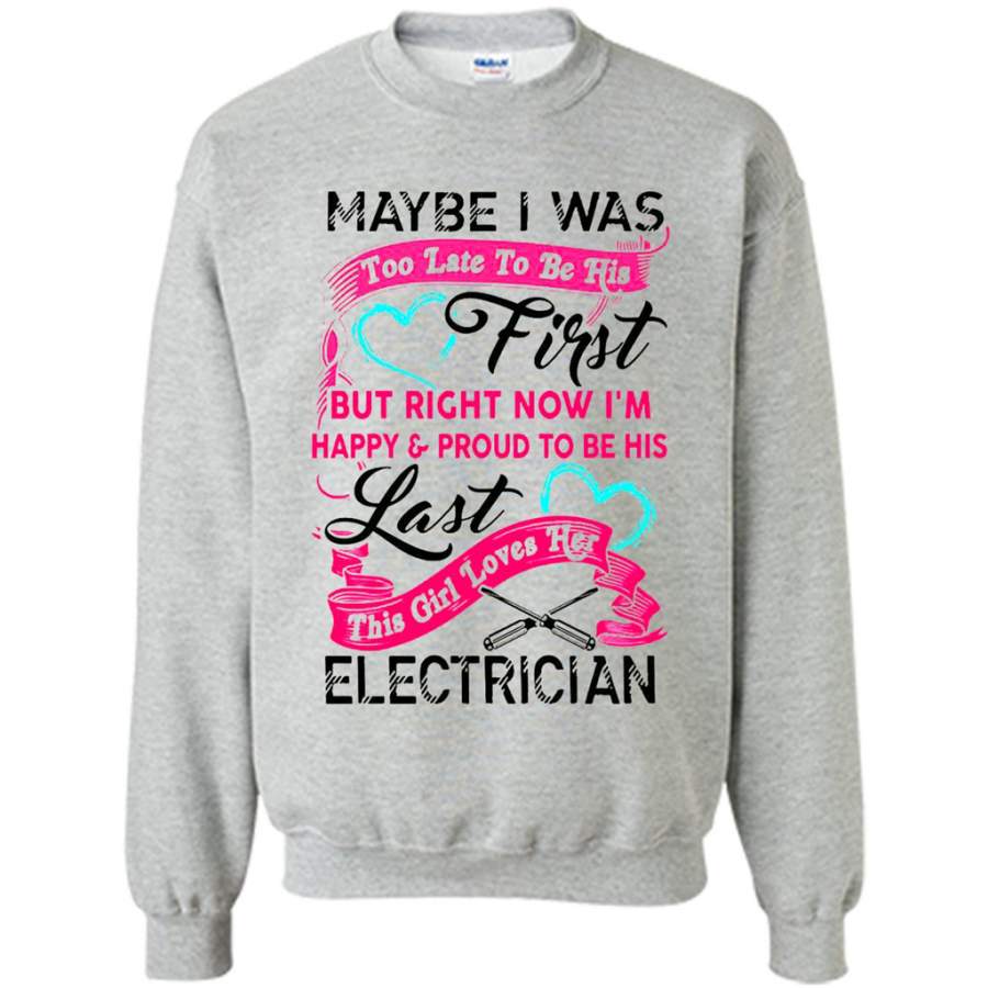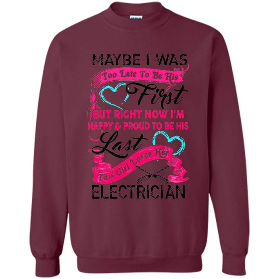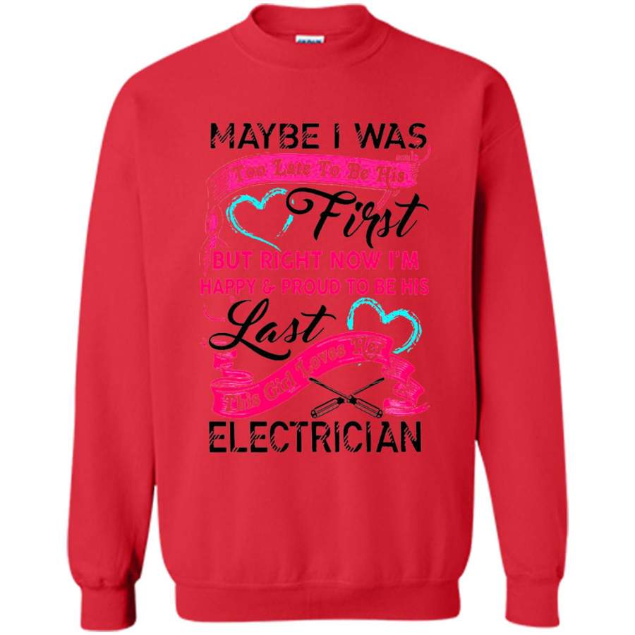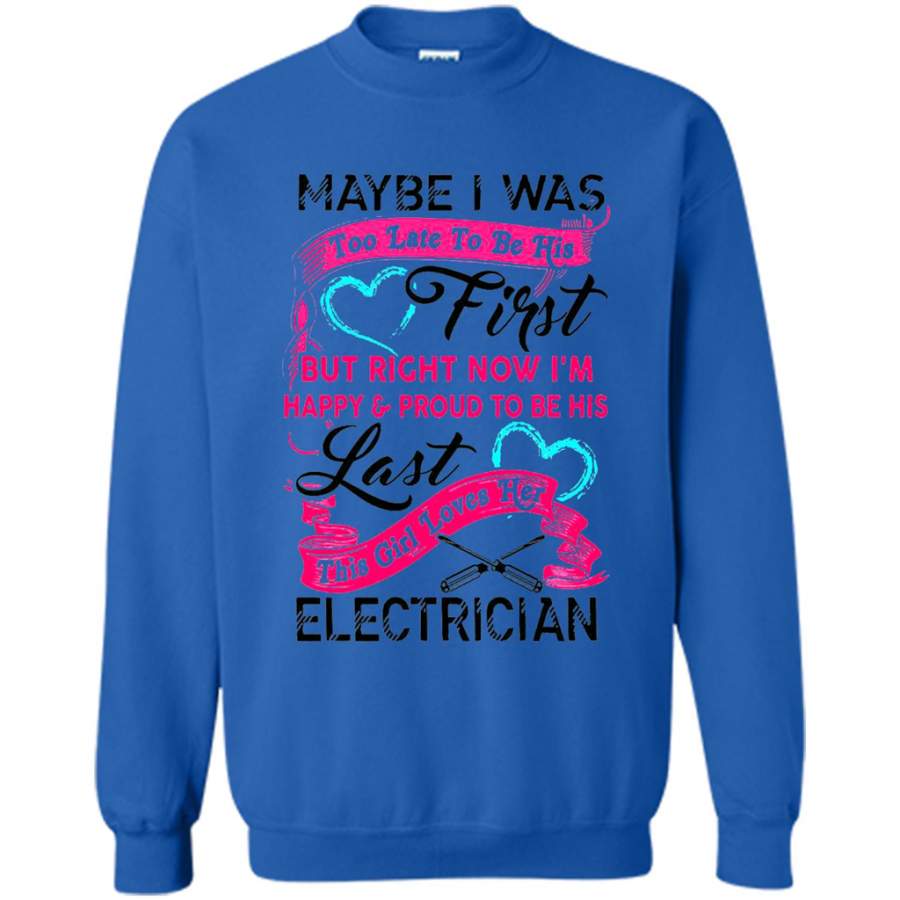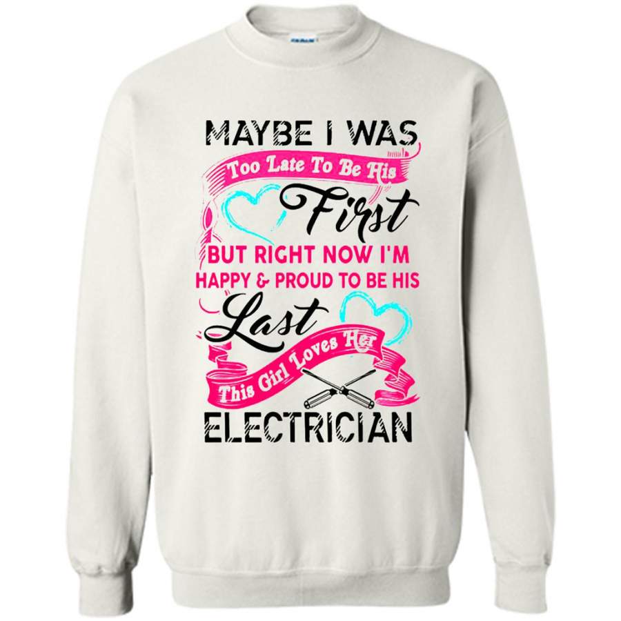 Maybe I Was Too Late To Be His First But Right Now I’m Happy & Proud To Be His Last This Girl Loves Her Electrician – Gildan Crewneck Sweatshirt