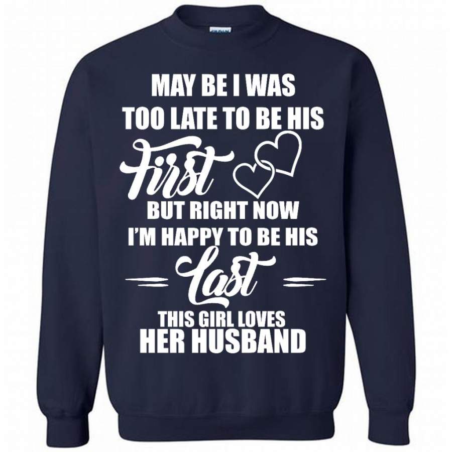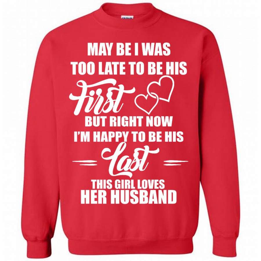 Maybe I Was Too Late To Be His First Love But Right Now I’m Happy To Be His Last This Girl Loves Her Husband – Gildan Crewneck Sweatshirt