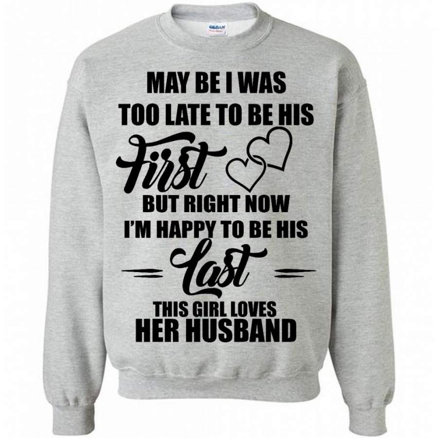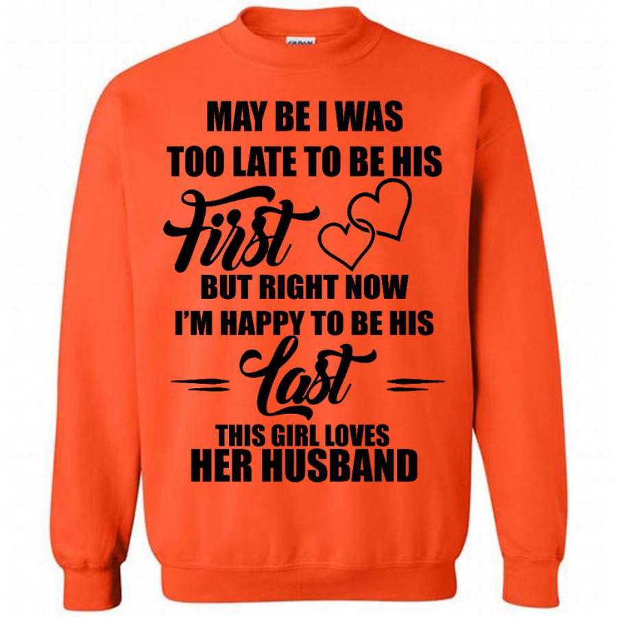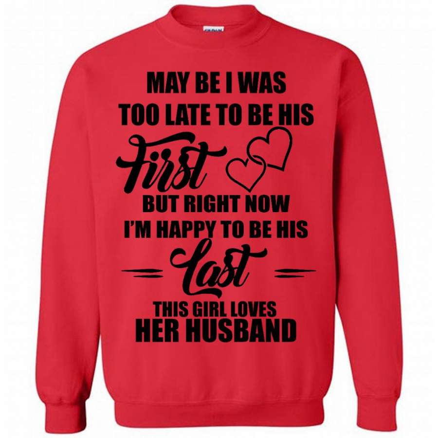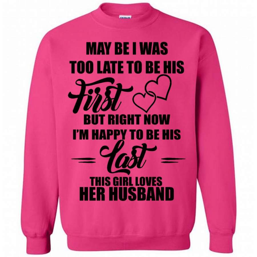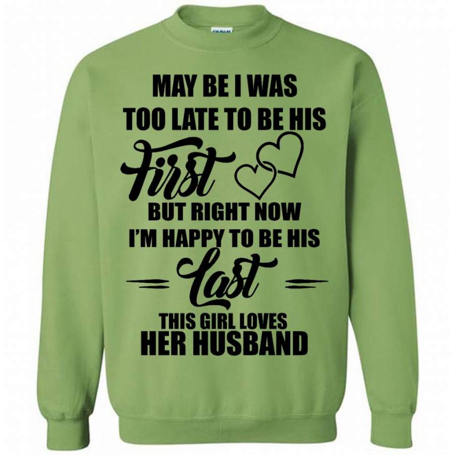 Maybe I Was Too Late To Be His First Love But Right Now I’m Happy To Be His Last This Girl Loves Her Husband (w) – Gildan Crewneck Sweatshirt