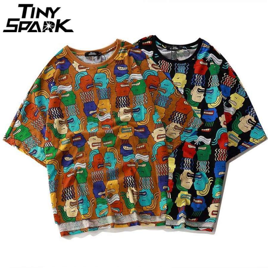 Men Creative Paint Cartoon T shirt Street wear Summer Casual Fashion Loose T-Shirt Half Sleeve Print