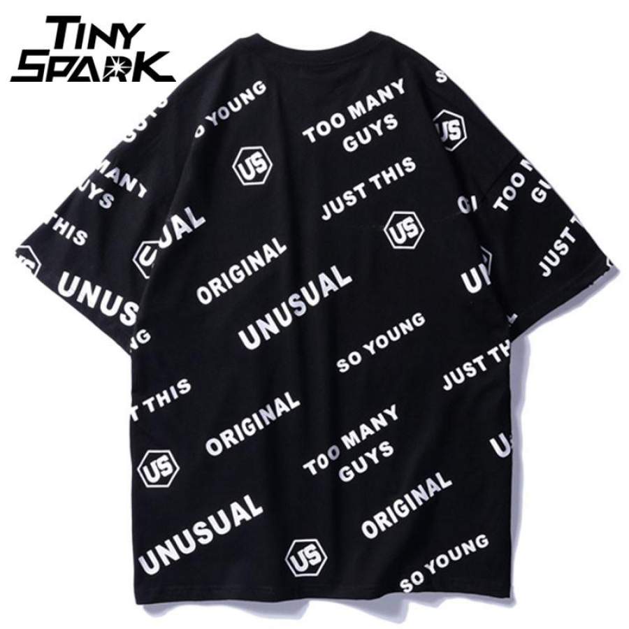 Men Hip Hop Summer Full Letter Print T-Shirt Street wear Casual Fashion Short Sleeve Cotton Tees Tops Black