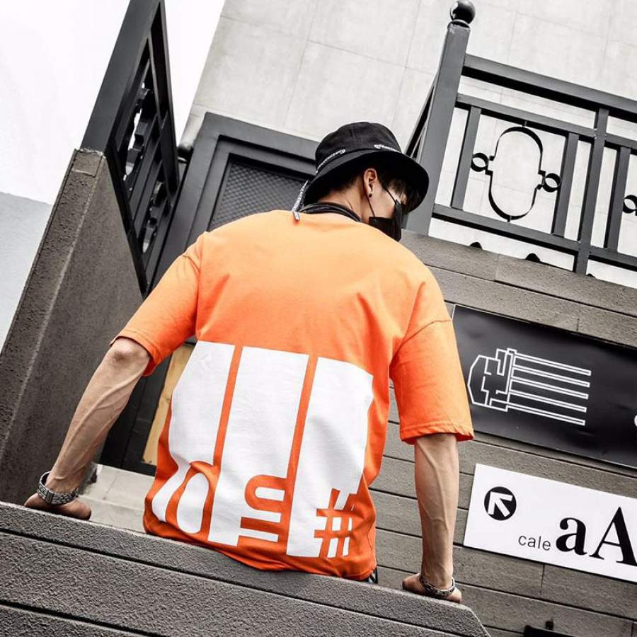 Men Hip Hop Summer Symbol Short Sleeve Cotton T shirt Street wear Fashion Top Tees Orange
