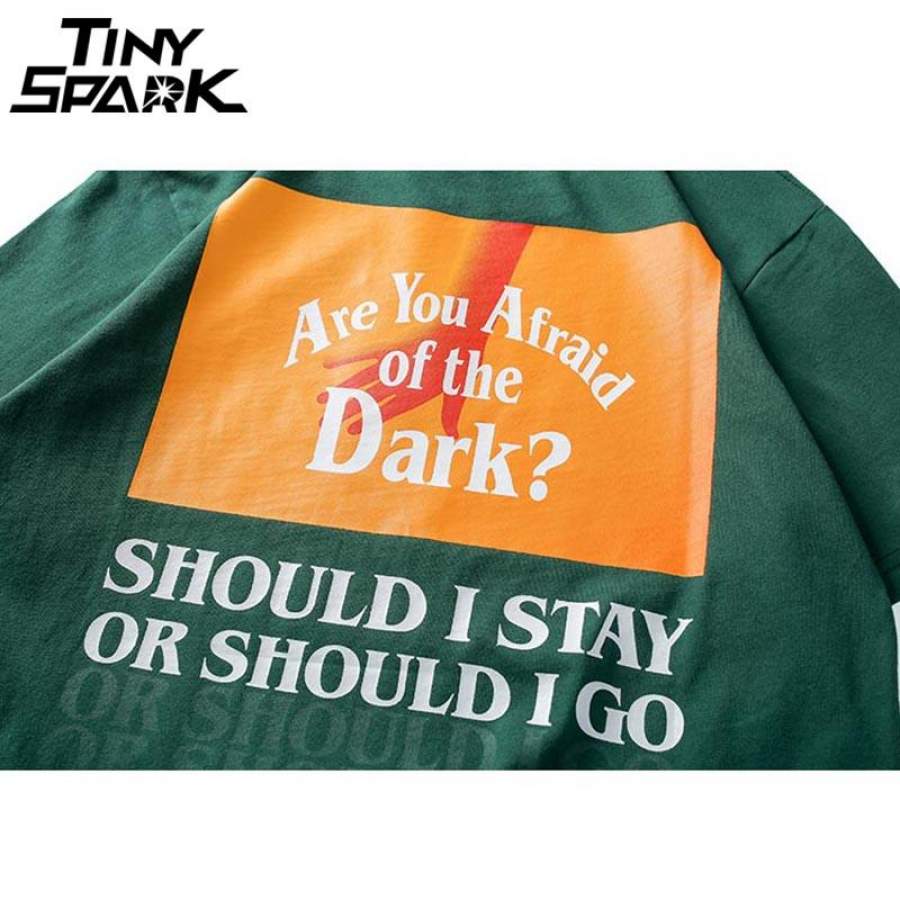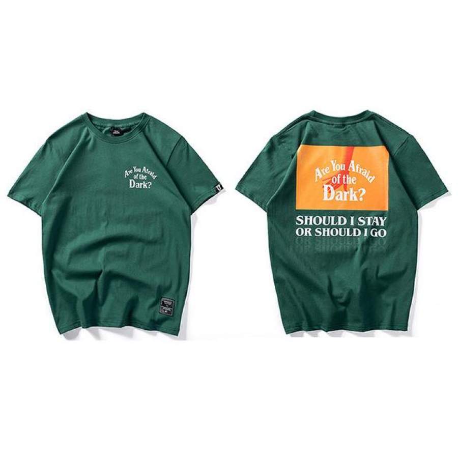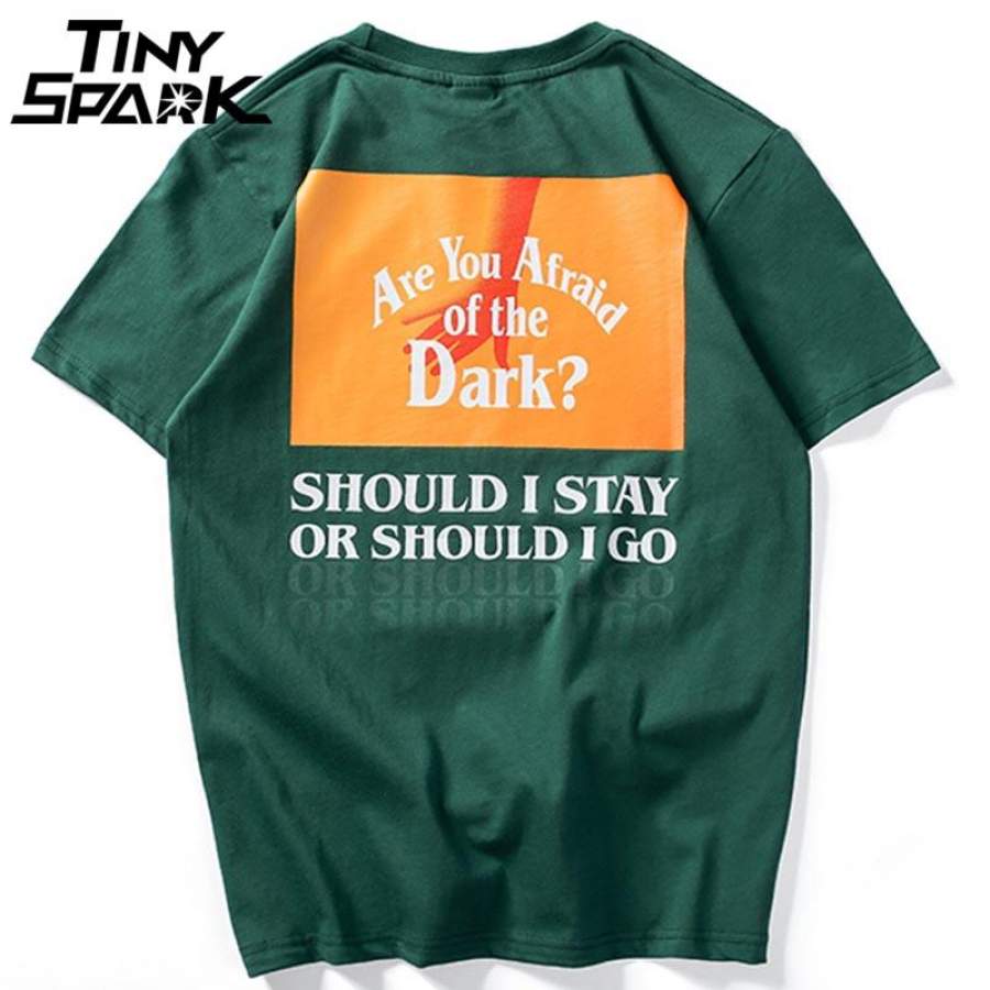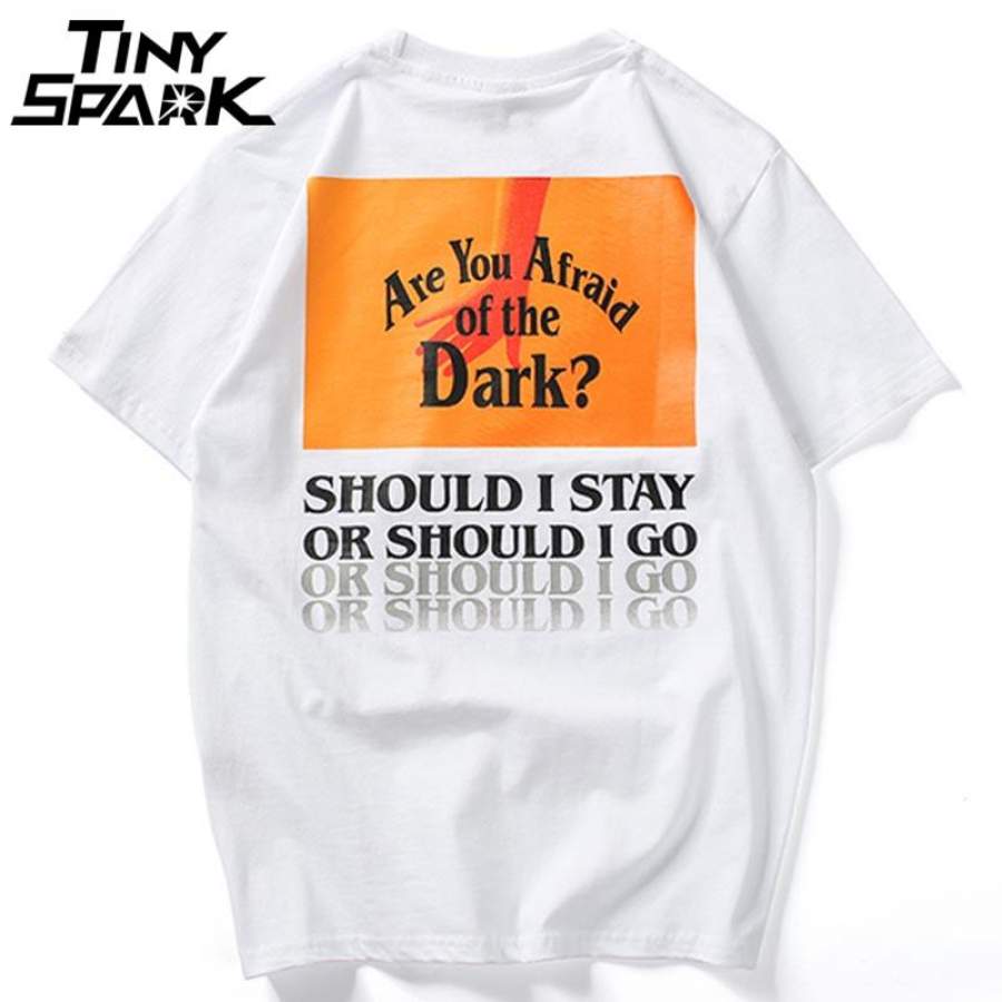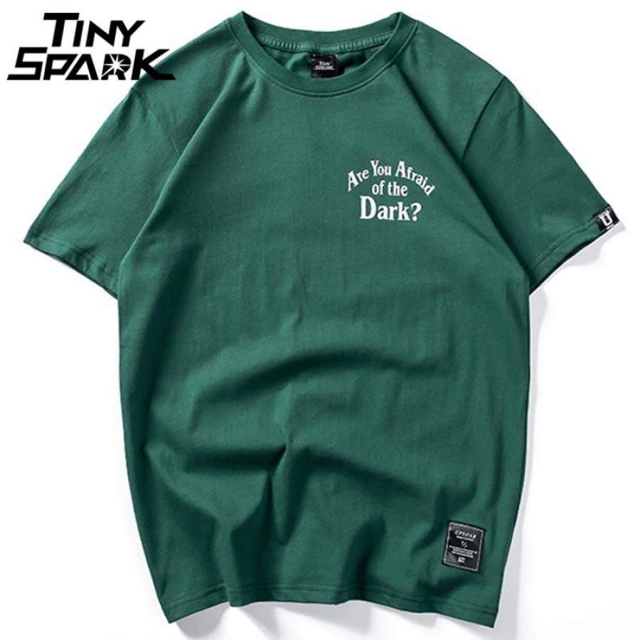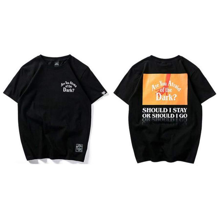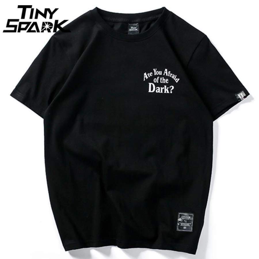 Men Short Sleeve T Shirts Summer Hip Hop Afraid of The Dark Print Hand Top Tee Fashion Men Casual T shirt Street wear