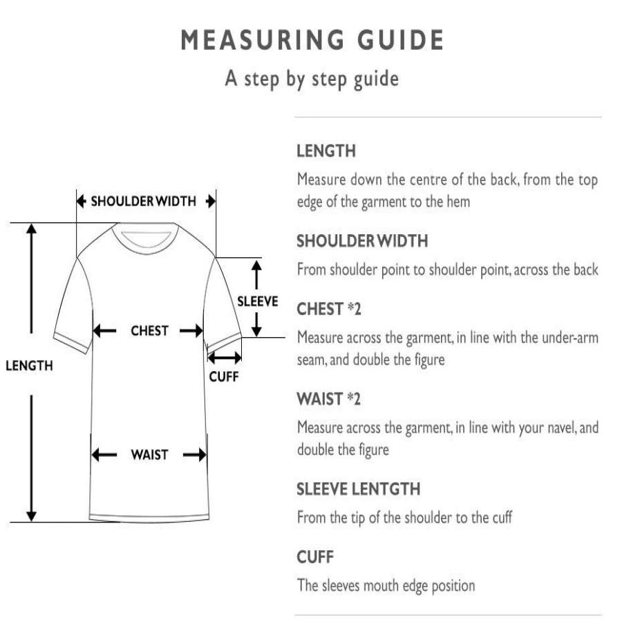We suggest ordering one or two sizes up for a fuller fit; Please refer to the size chart for actual garment measurements