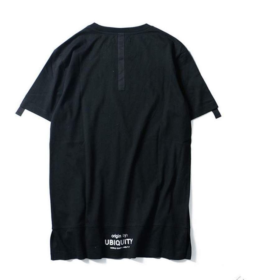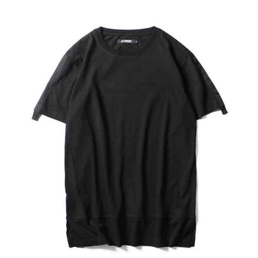 Men T Shirt Black Extend Hip Hop High Street Man Fashion Summer Short Sleeve Solid Color Top Tees