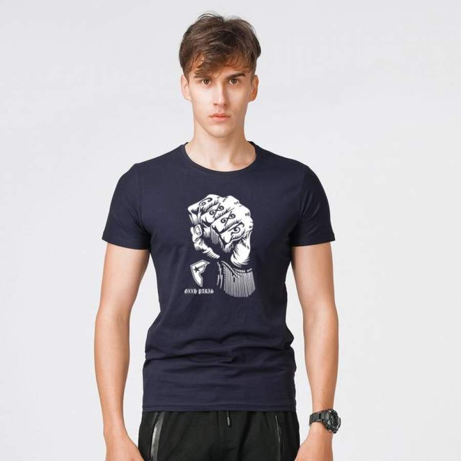 Men T Shirt Summer Top Printed Slim Fit Short Sleeve T-Shirt Cotton Casual Men Fitness Clothes