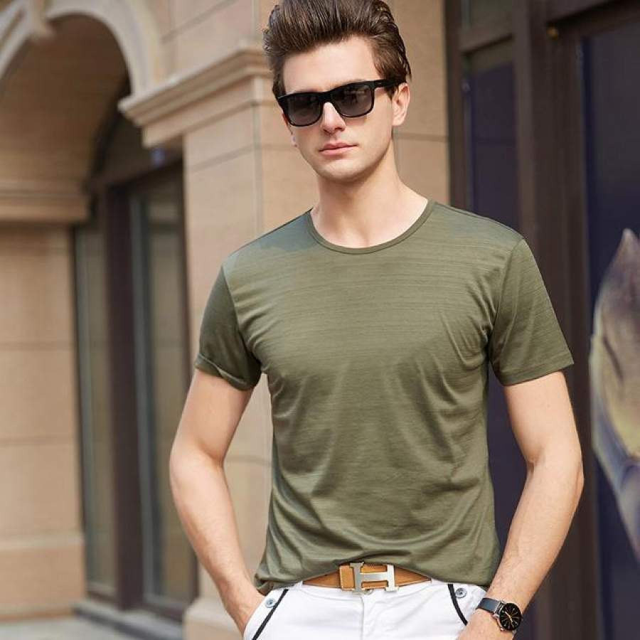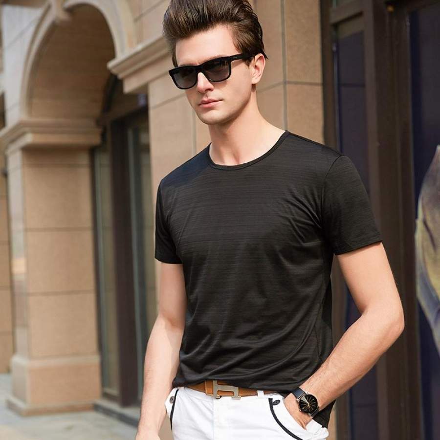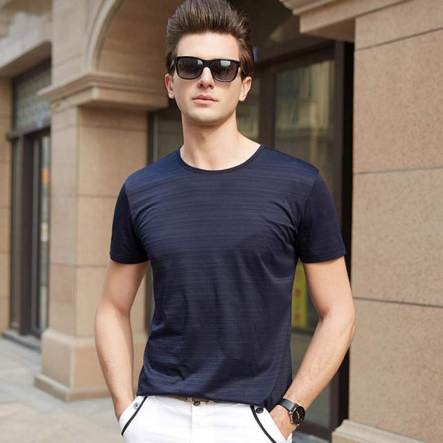 Men T Shirt Summer Top Solid Color Slim Fit Short Sleeve T-Shirt O-Neck Casual Men Clothes