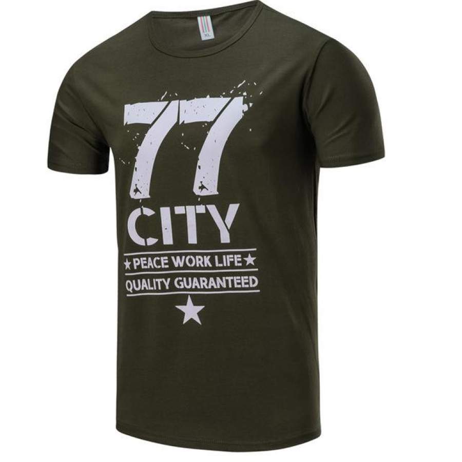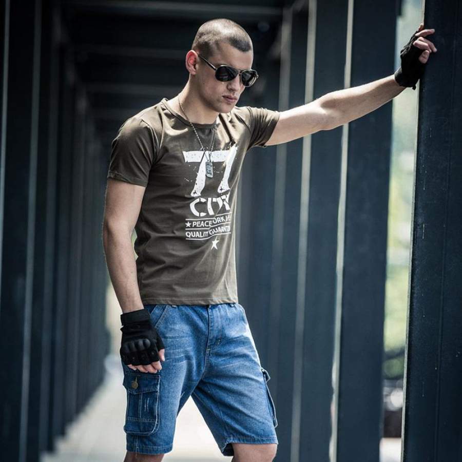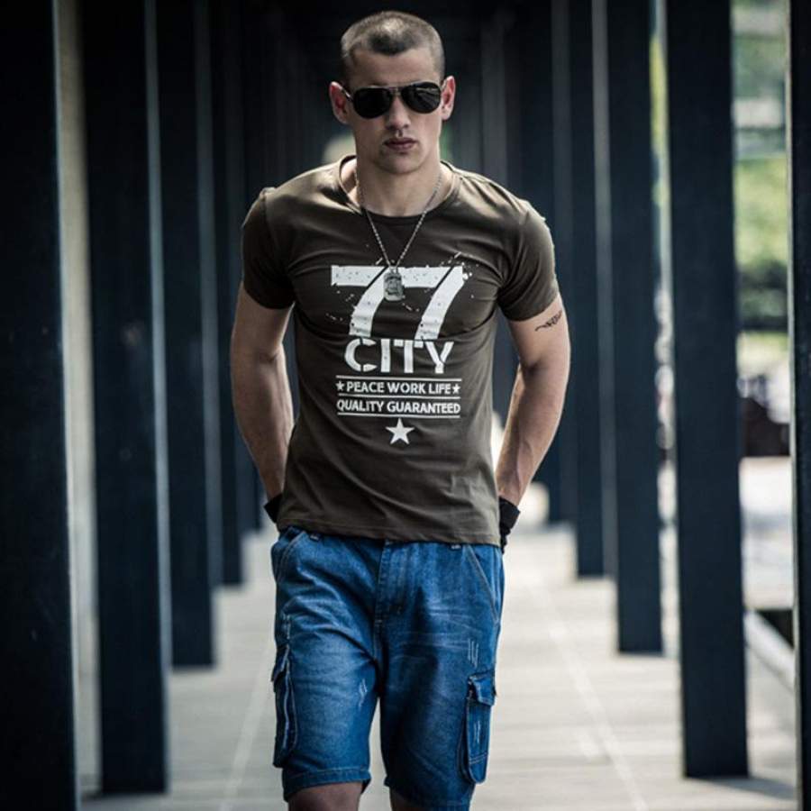 Men T Shirt Summer Top Trend Letter Printed Slim Fit Short Sleeve T-Shirt Cotton Casual
