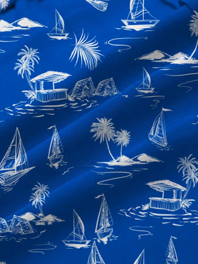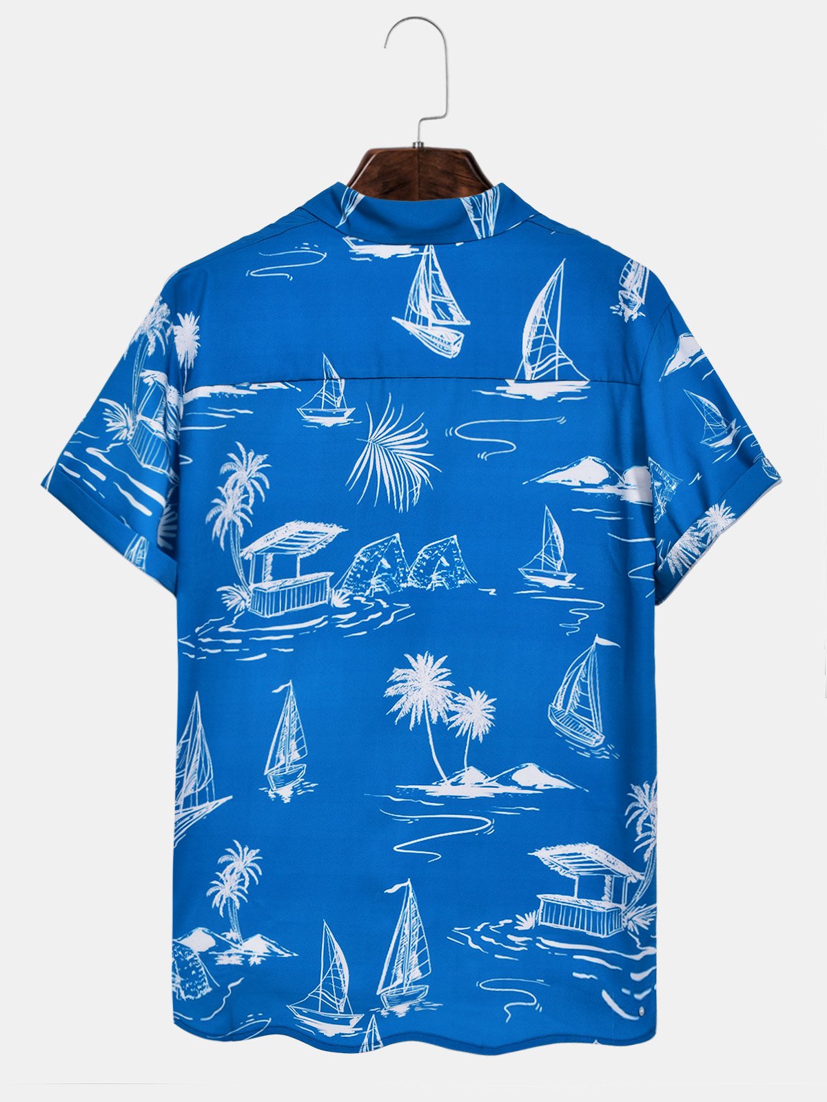 Men’S 50S Retro Hawaiian Shirts Holiday Beach Pattern Blue Quick Dry Short Sleeve Top Shirts For Couples