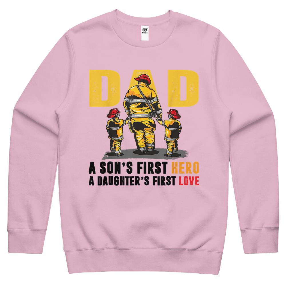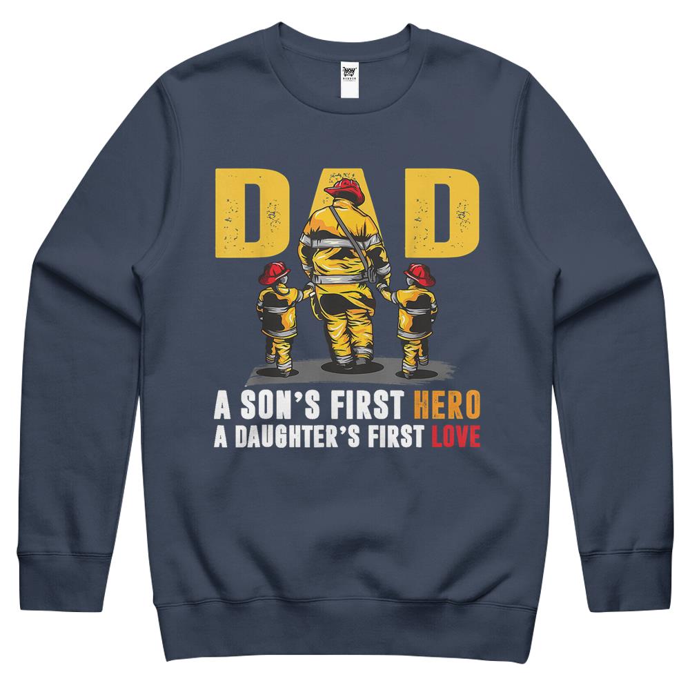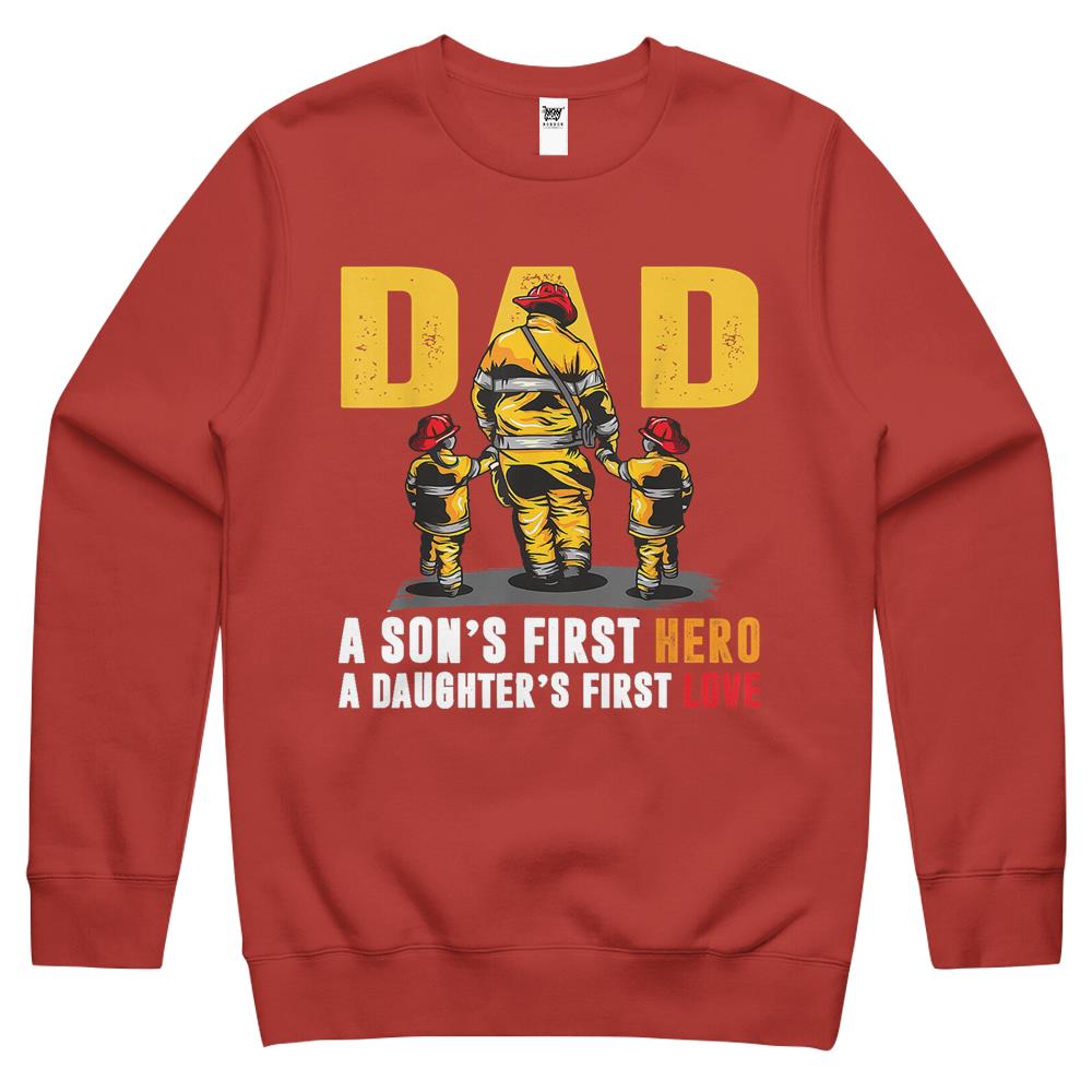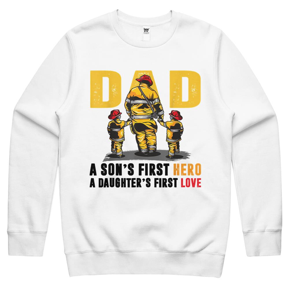 Mens Dad Son’s First Hero Daughter’s First Love Firefighter Crewneck Sweatshirt