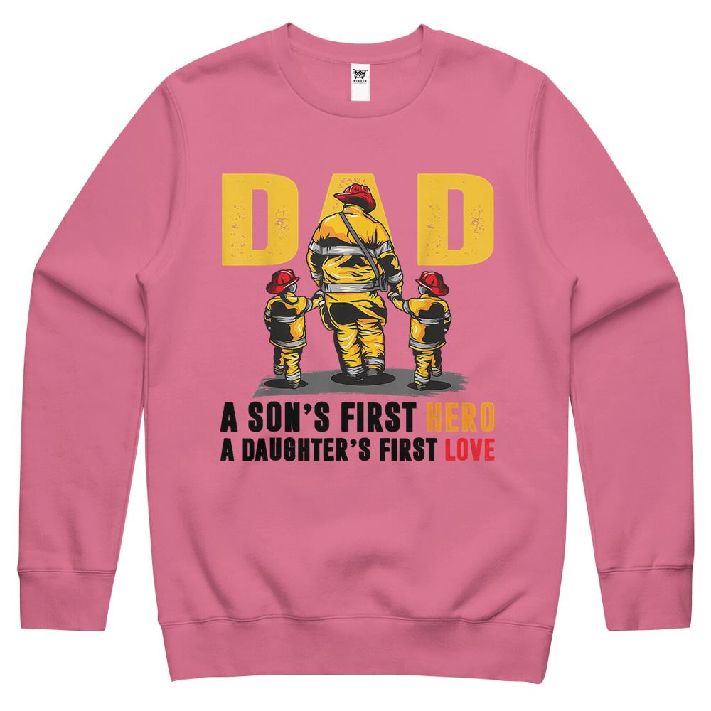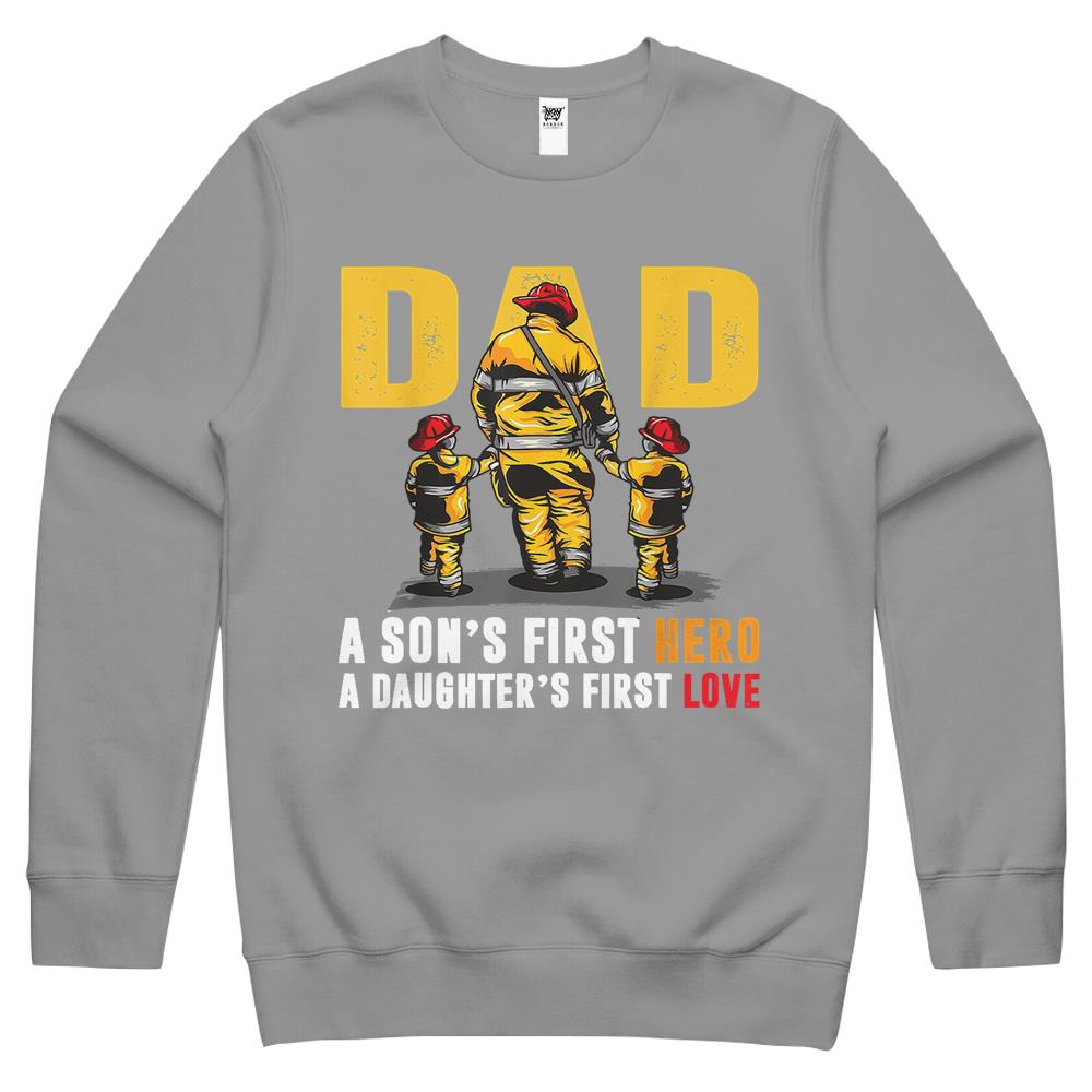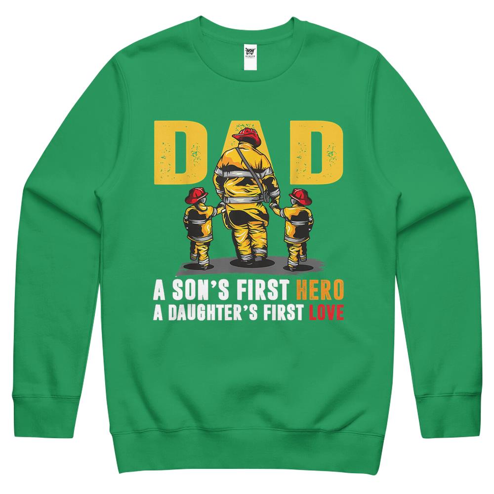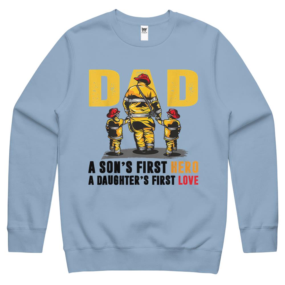 Mens Dad Son’s First Hero Daughter’s First Love Firefighter Crewneck Sweatshirt