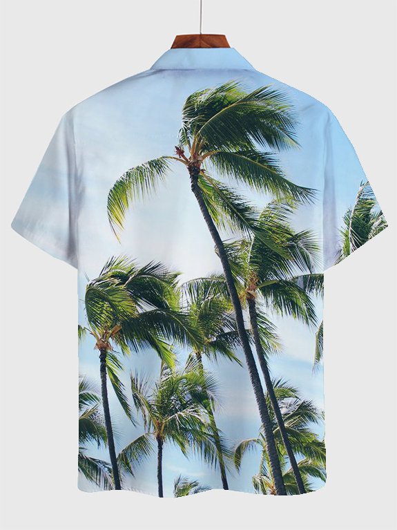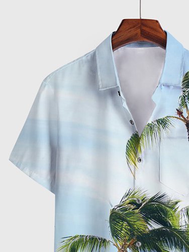 Men’S Hawaiian Shirt Holiday Pattern Coconut Print Blue Cotton Blend Short Sleeve Shirt For Couples