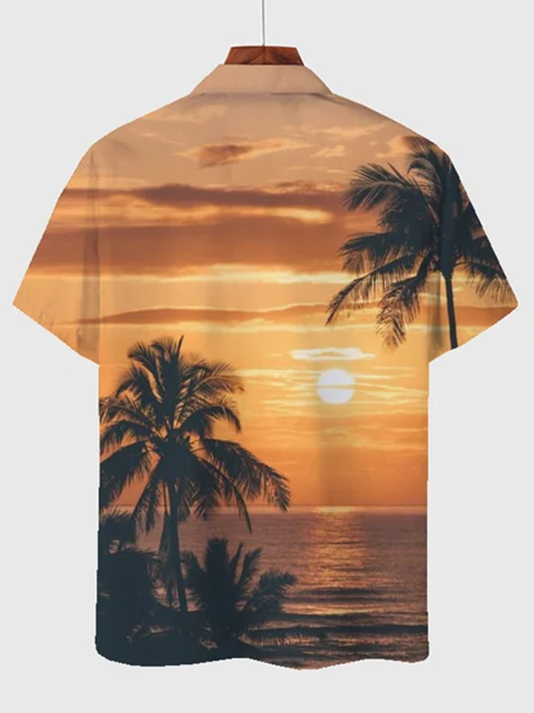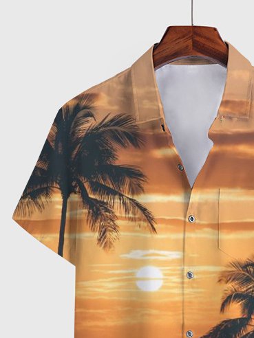 Men’S Hawaiian Shirt Holiday Pattern Coconut Print Orange Cotton Blend Short Sleeve Shirt For Couples