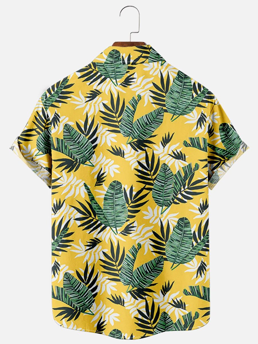 Mens Hawaiian Shirt Tropical Leaves Print Casual Chest Pocket Short Sleeve Shirts For Couples