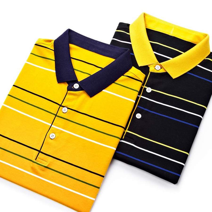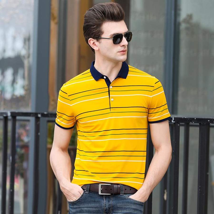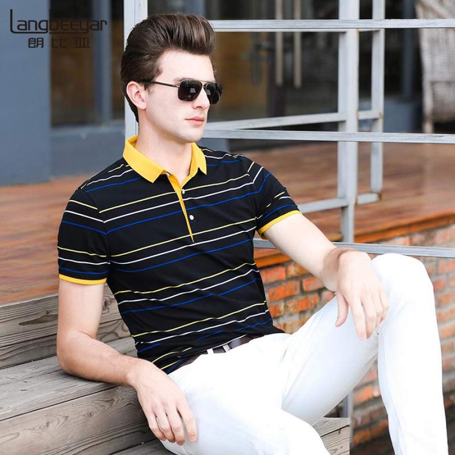 Mens Summer Striped Slim Fit Men Polo Shirt Short Sleeve Business Casual