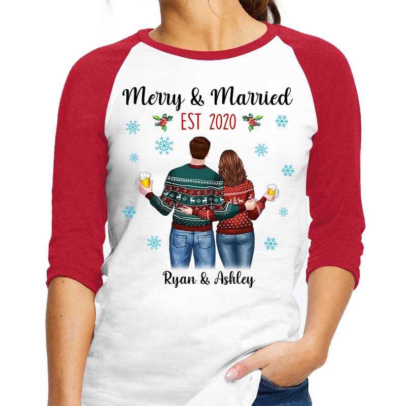 Merry And Married Couple Standing Christmas Personalized Raglan Shirt