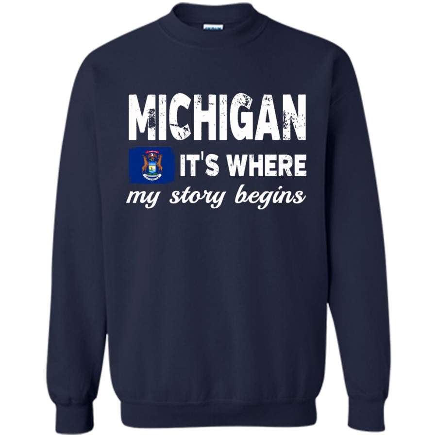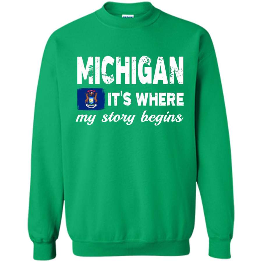So whether you're looking to show off your own name or create a personalized gift for someone special, LateAndLow Store has got you covered. Start designing your own custom Michigan States – It’s Where My Love Story Begins – Gildan Crewneck Sweatshirt print-on-demand product today, and let us bring your vision to life!