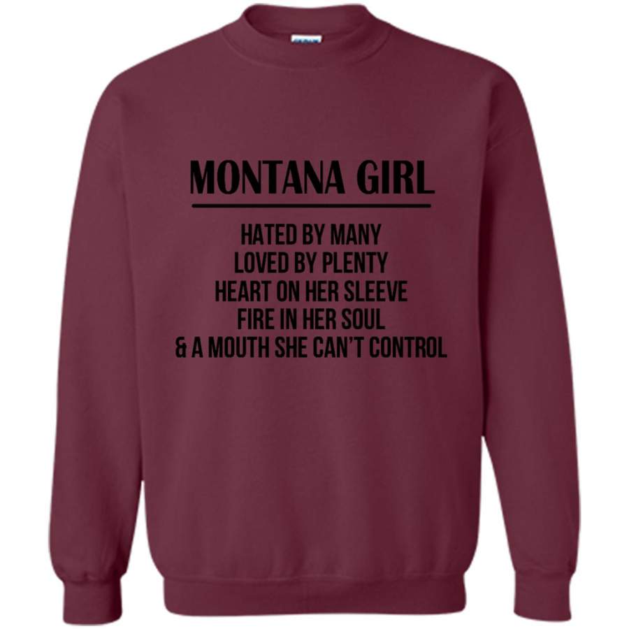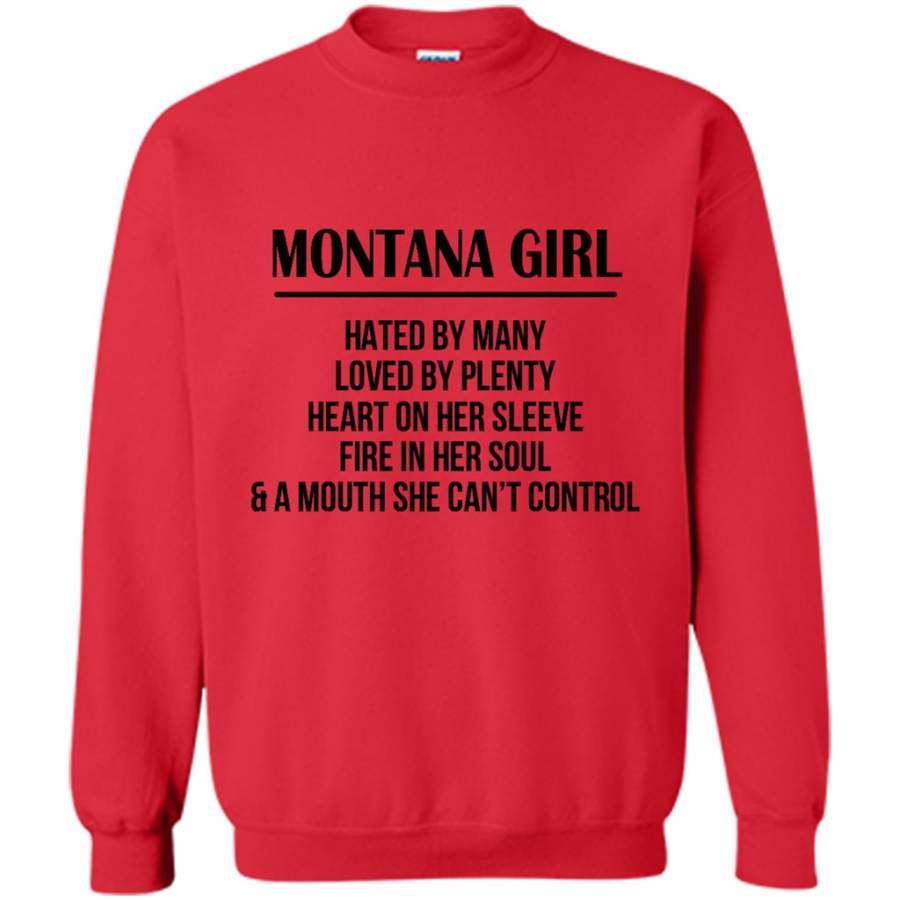 Montana Girl Hated By Many Loved By Plenty Heart On Her Sleeve Fire In Her Soul A Mouth She Can’t Control – Gildan Crewneck Sweatshirt