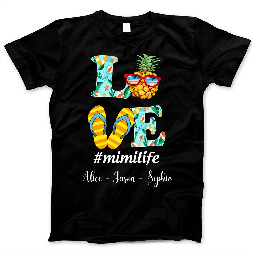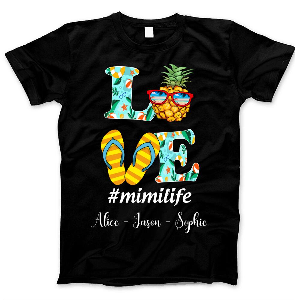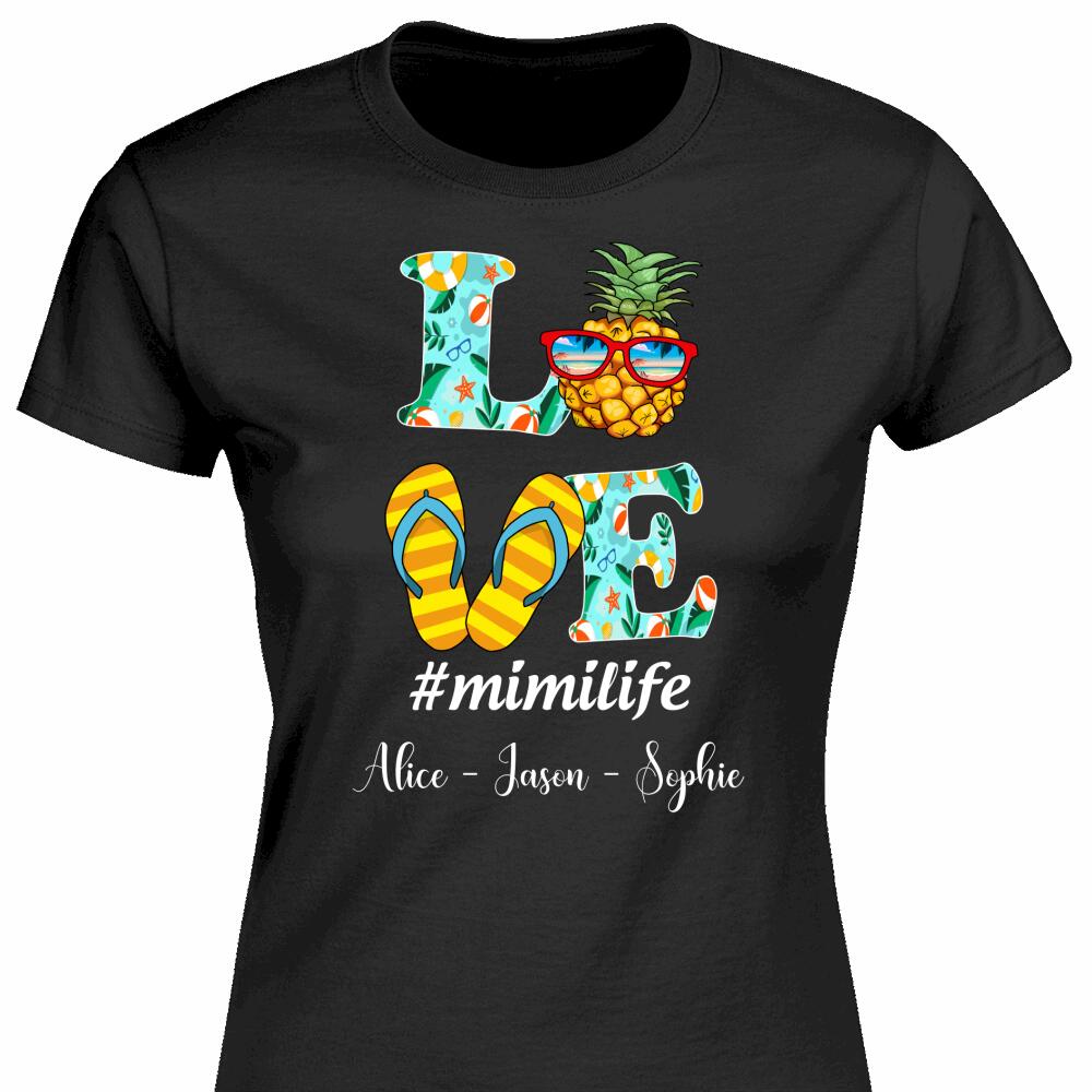 Mother’s Day Gift For Grandma Mimi Nana Mom Life Love Beach Summer Pineapple Flip Flop Custom Title And Name Personalized T-shirt