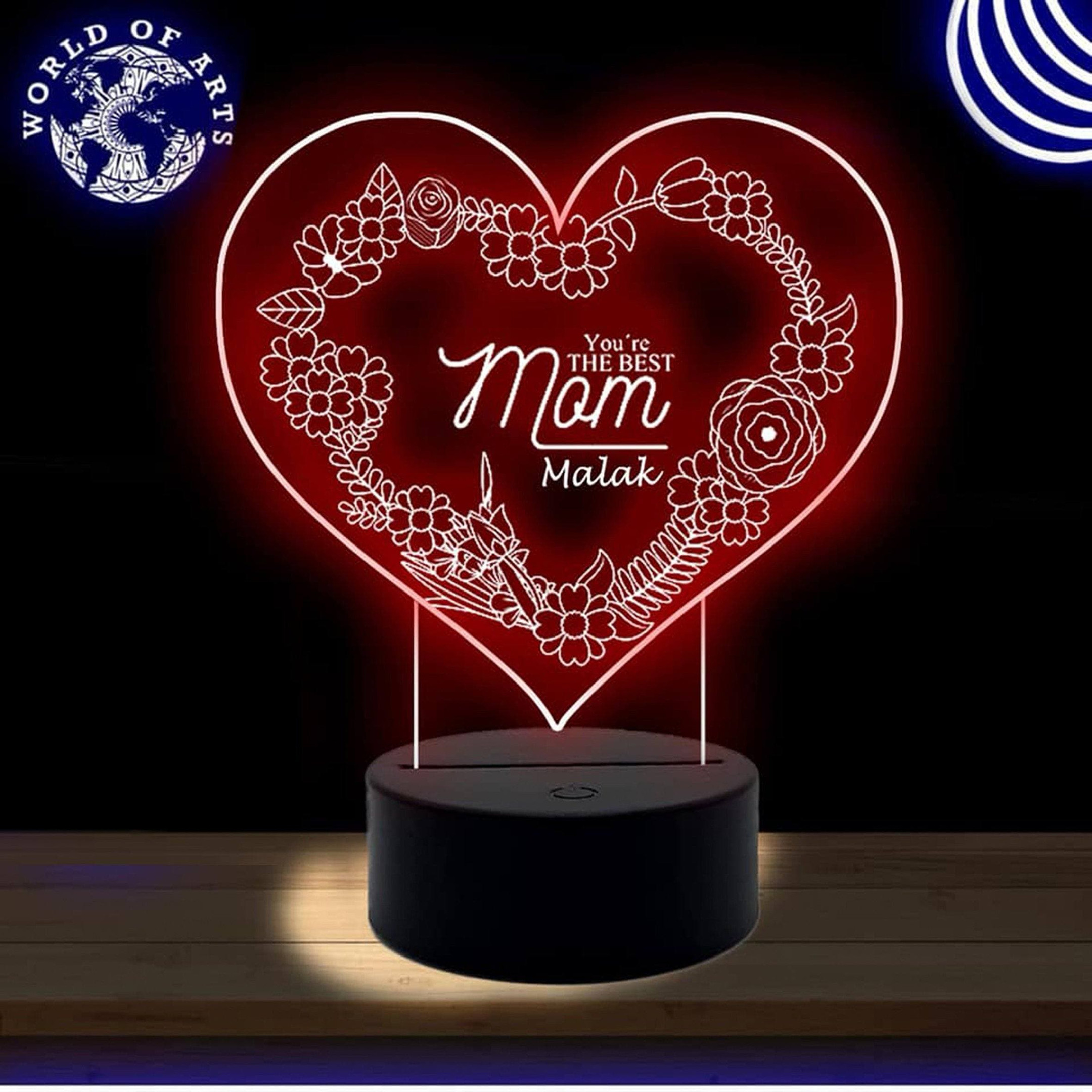 So whether you're looking to show off your own name or create a personalized gift for someone special, LateAndLow Store has got you covered. Start designing your own custom Mothers Day Love Heart 3D Illusion Night Light Led Light print-on-demand product today, and let us bring your vision to life!