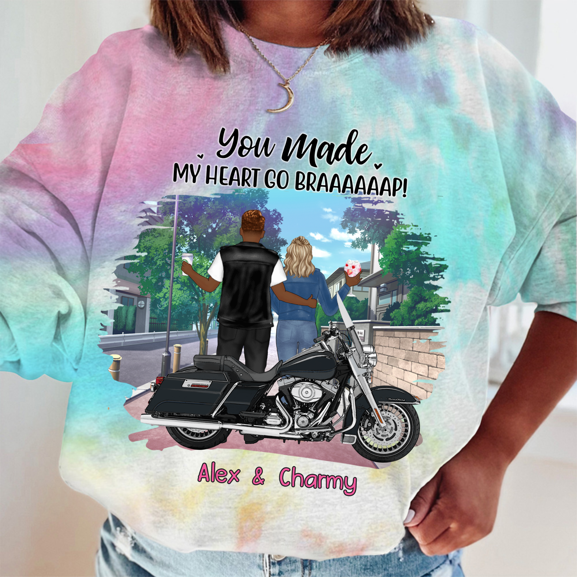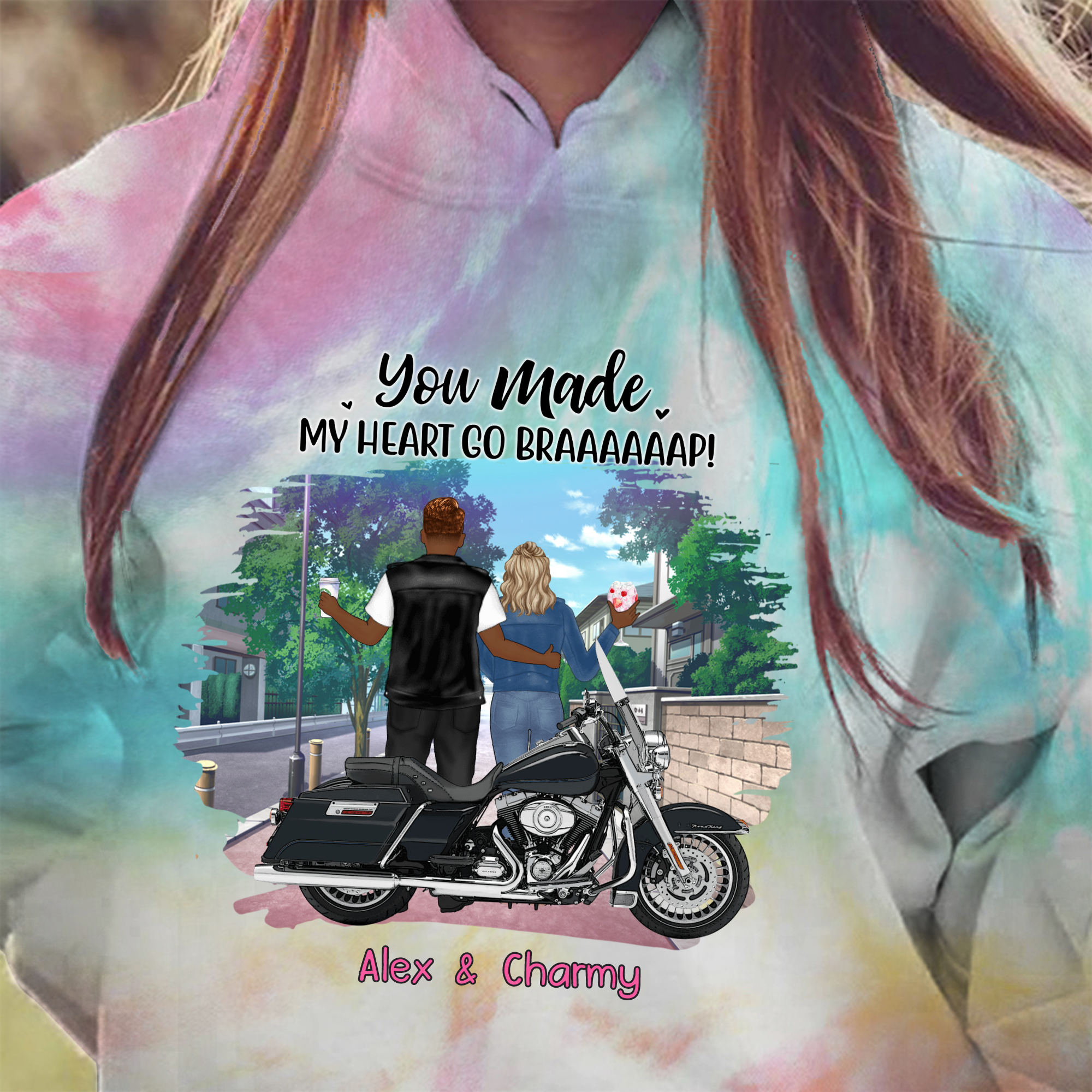 Motorcycle Couple Personalized Valentine Tie Dye Shirt Sweatshirt Hoodie Ap651