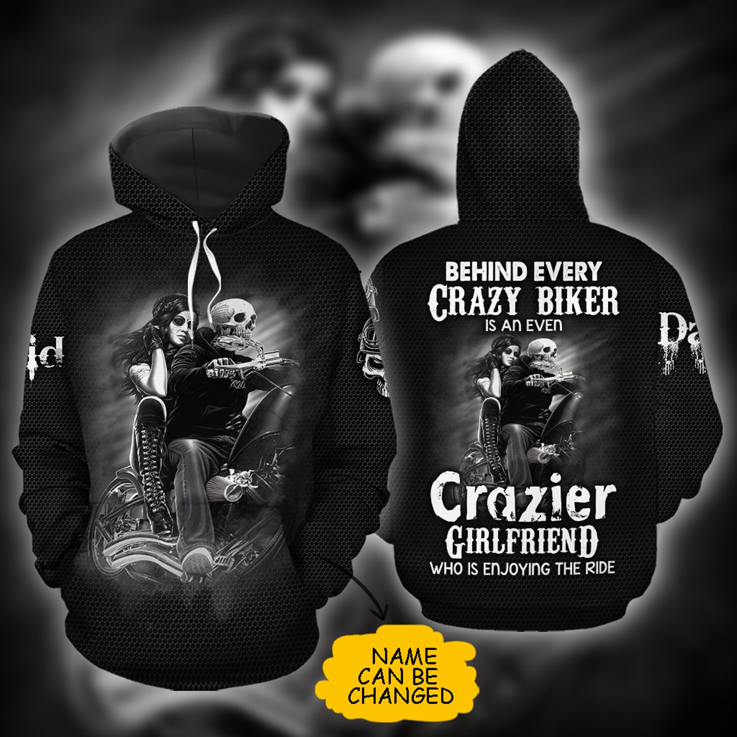 So whether you're looking to show off your own name or create a personalized gift for someone special, LateAndLow Store has got you covered. Start designing your own custom Motorcyle Crazy Biker Boyfriend Over Print 3D Matching Hoodie Personalizedwitch For Motorcyle Couple print-on-demand product today, and let us bring your vision to life!
