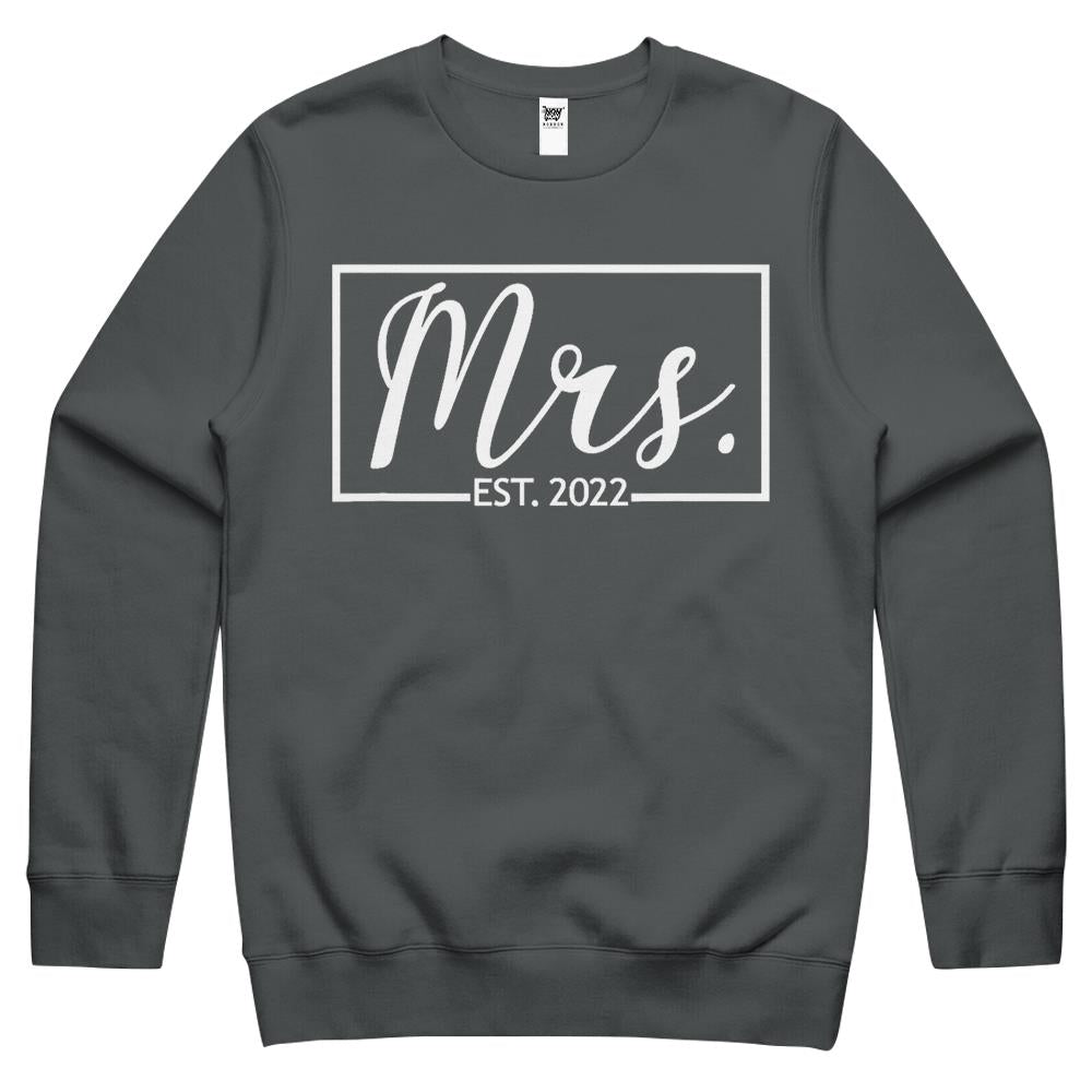 Mrs. Est. 2022 Married Wedding Wife Hubby Couple Mr Matching Crewneck Sweatshirt