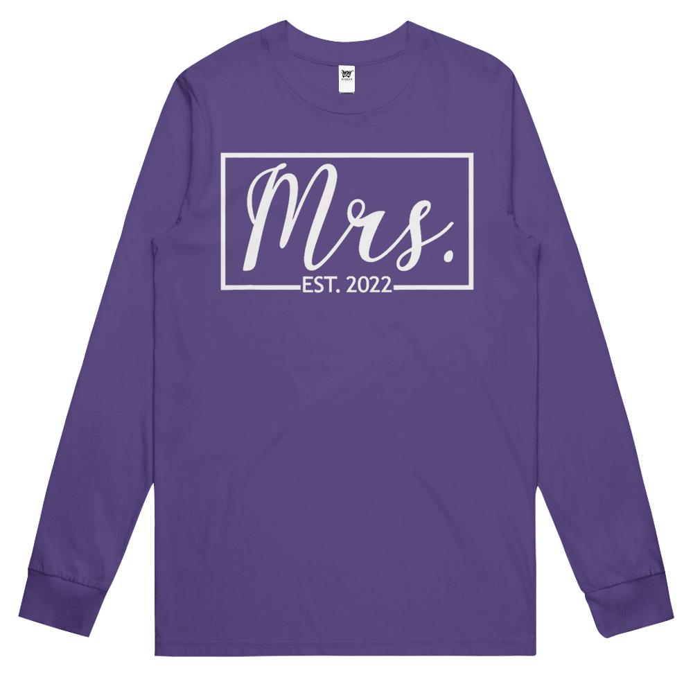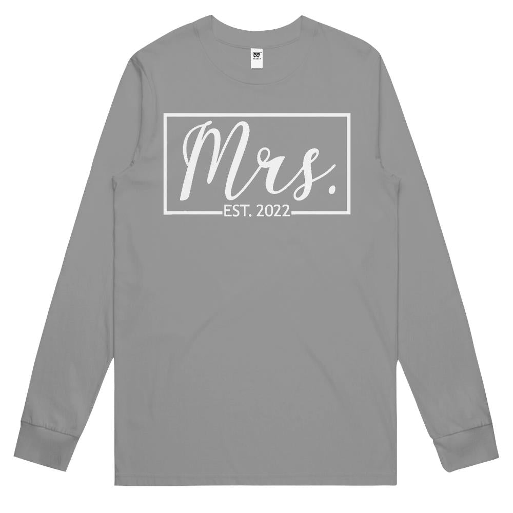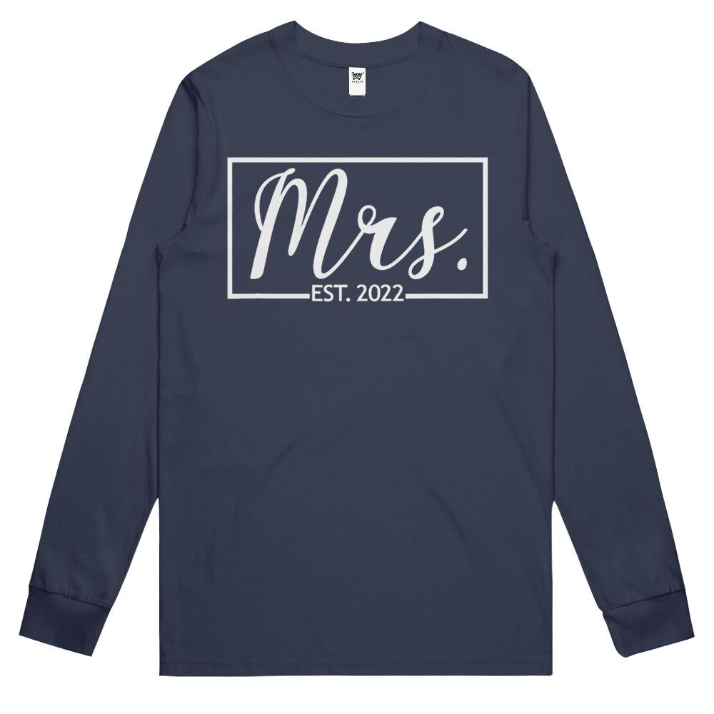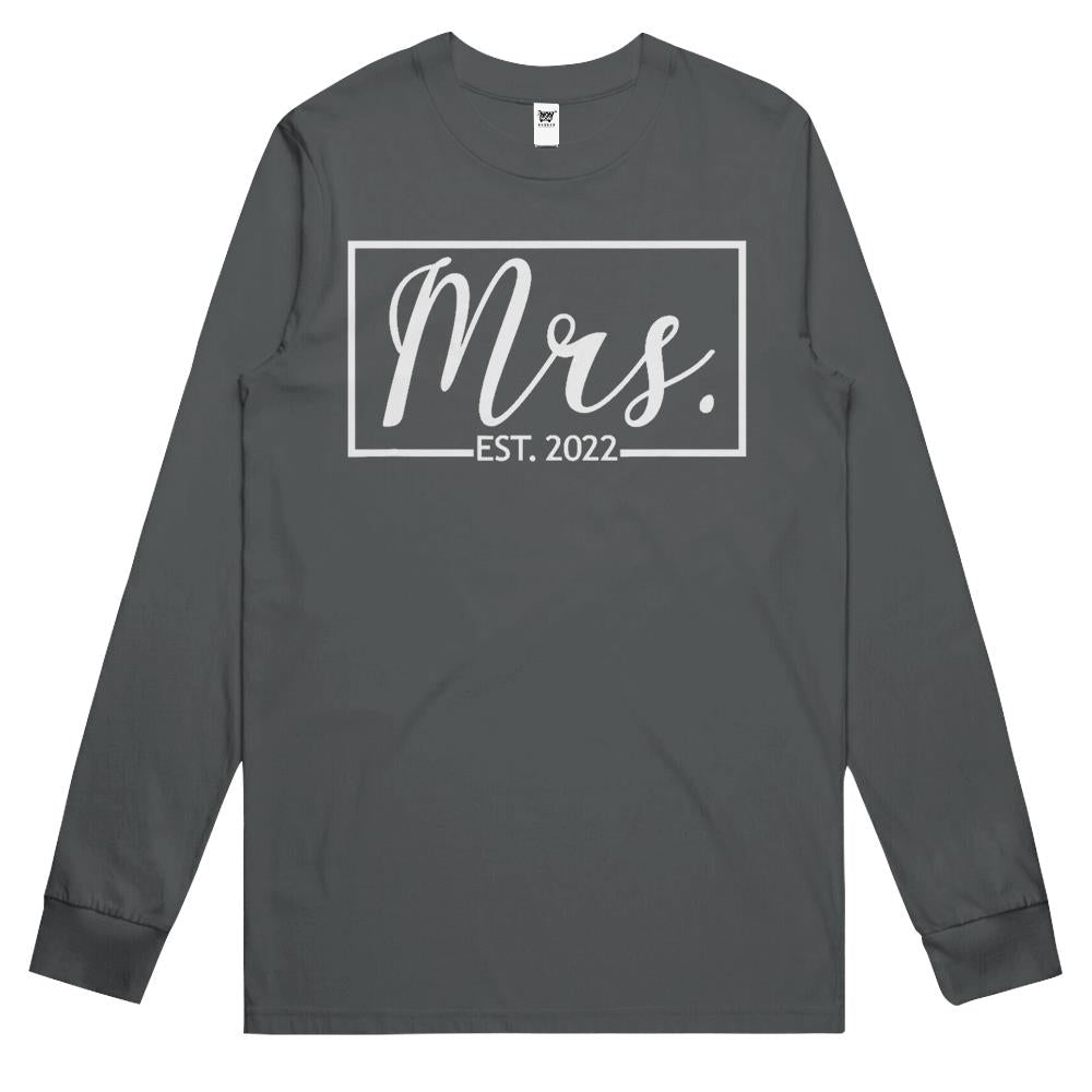 Mrs. Est. 2022 Married Wedding Wife Hubby Couple Mr Matching Long Sleeve T Shirts