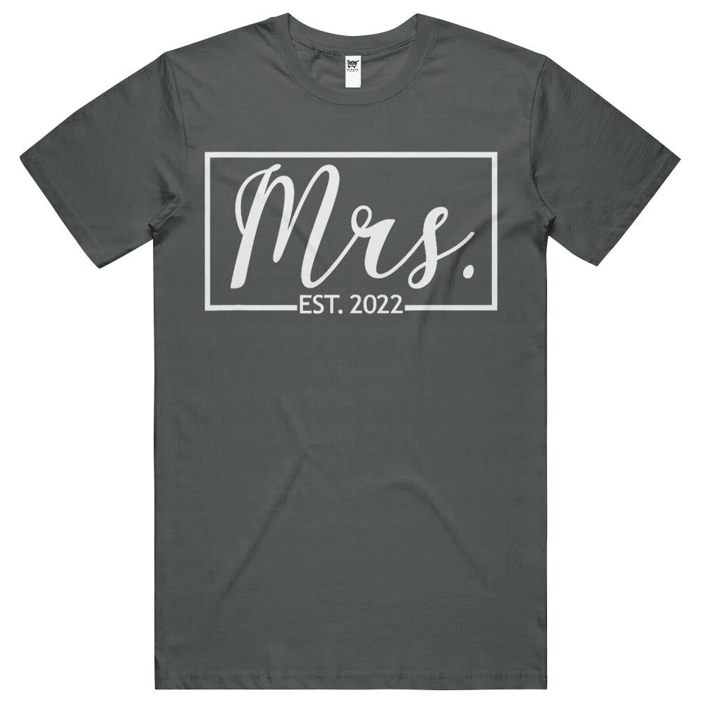 Mrs. Est. 2022 Married Wedding Wife Hubby Couple Mr Matching T Shirts